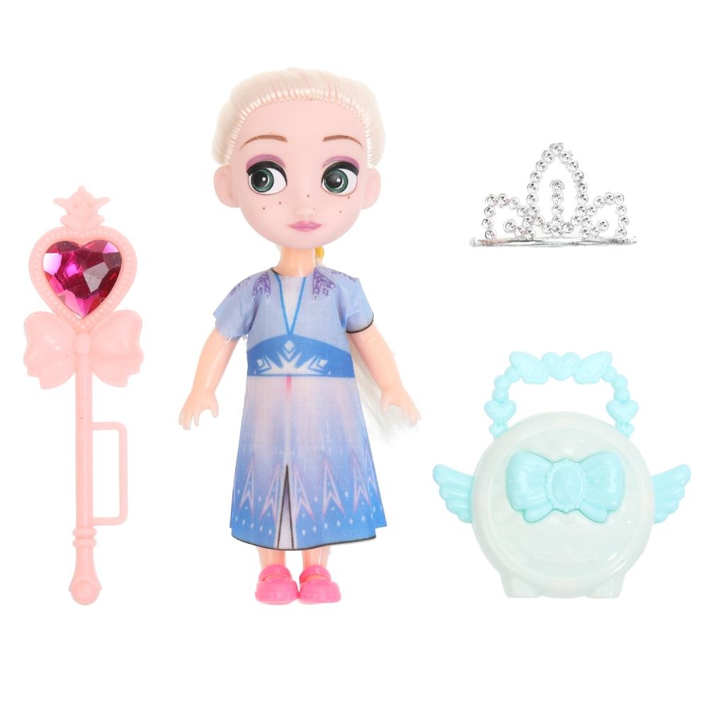 Милая куколка в образе принцессы из любимой сказочной истории непременно понравится вашей малышке. Она одета в красивое платье, украшенное «морозными» узорами, на ножках – симпатичные туфельки ярко-розового цвета. Одежда и обувь легко снимаются и надеваются.