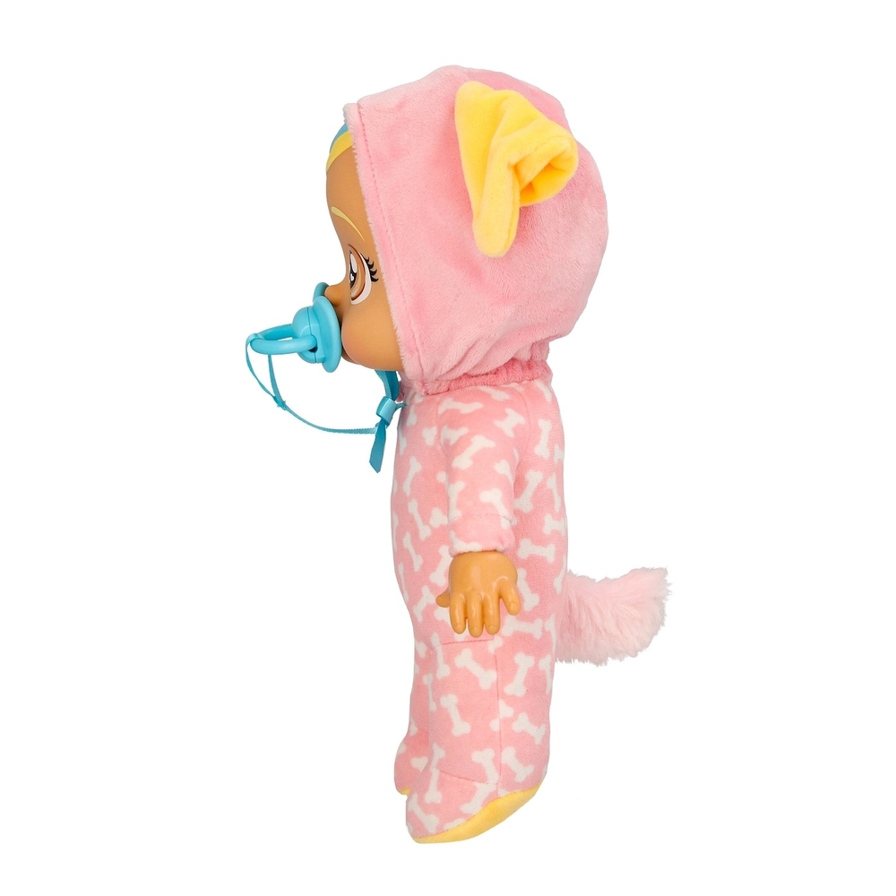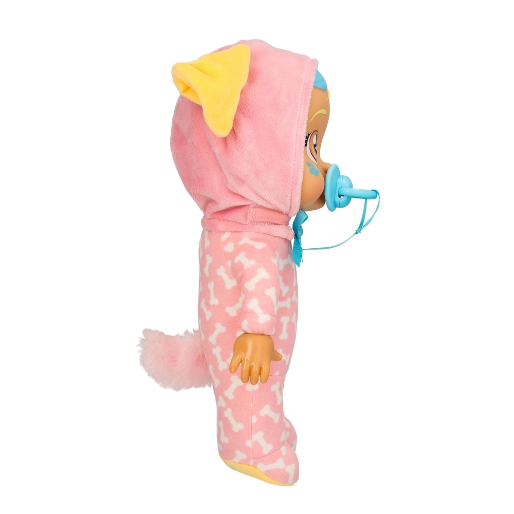 Малышка Маффи – активная и любознательная малышка! У нее мягкое плюшевое тело, которое идеально подходит для того, чтобы обниматься и играть. Она носит милую пижамку собачки и яркую пустышку. Малышку удобно брать с собой куда угодно! Если нажать на ее голову, она начнет плакать настоящими слезами. Обними Маффи и дай ей пустышку или расскажи веселую историю, и она снова станет счастливой! Cry Babies поможет научиться заботиться о других и делиться любовью!