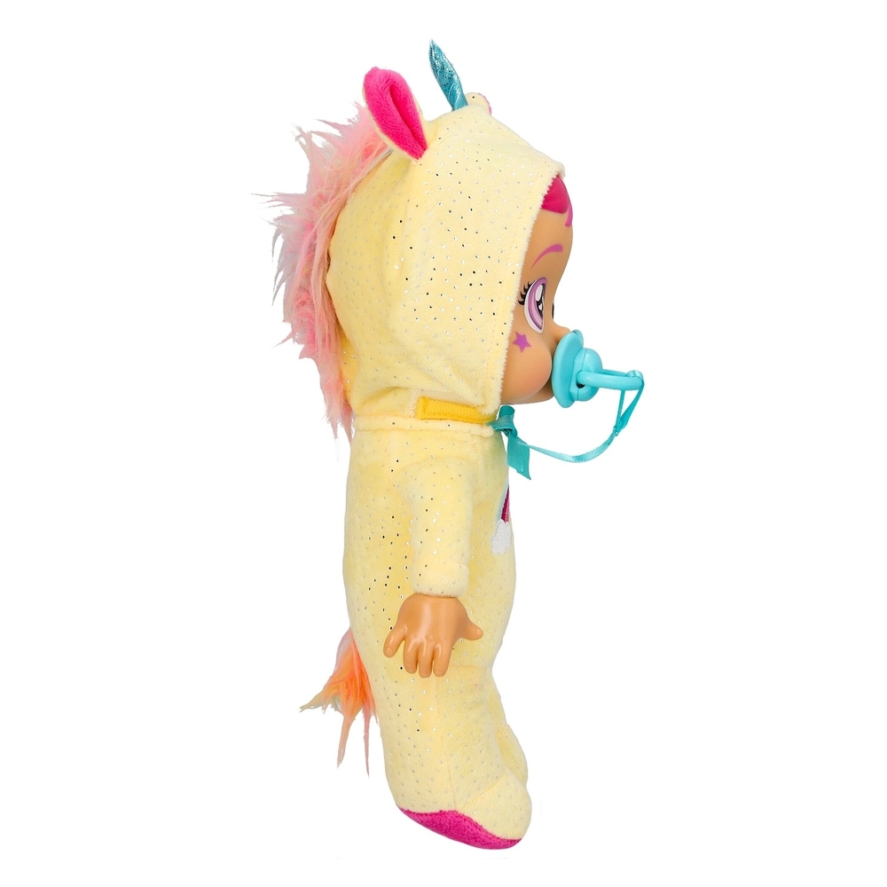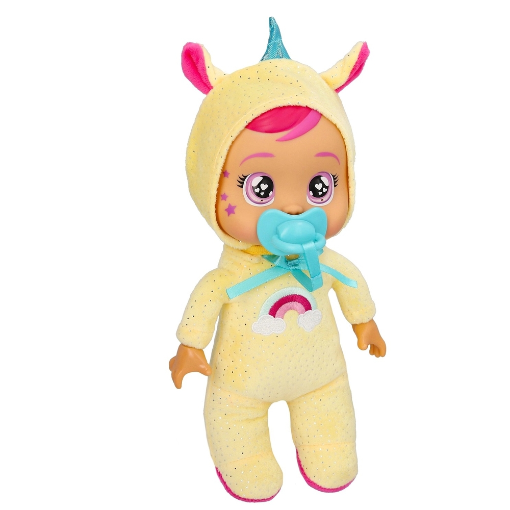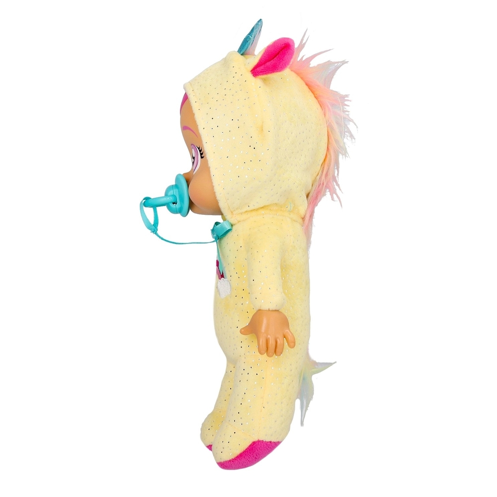 Кукла Эшли Малышка, плачущая,высотой 25 см с мягконабивным телом и пустышкой, закрепленной к пижамке. Для того чтобы слезы вытекали из глаз при нажатии на голову, необходимо залить воду в специальный отсек на голове куклы и вынуть пустышку.