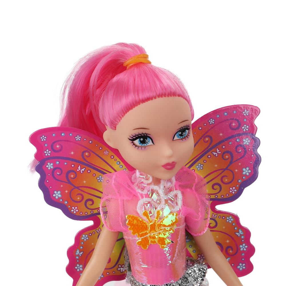 Очаровательная куколка в образе феи с розовыми волосами и яркими крылышками непременно понравится вашей малышке.