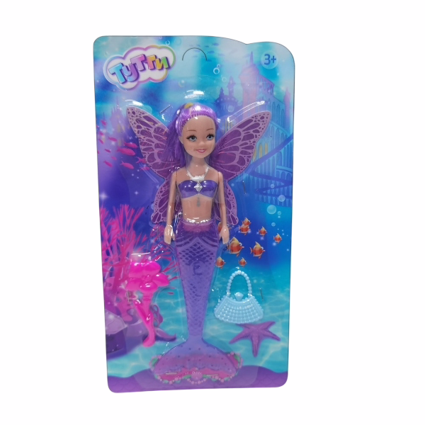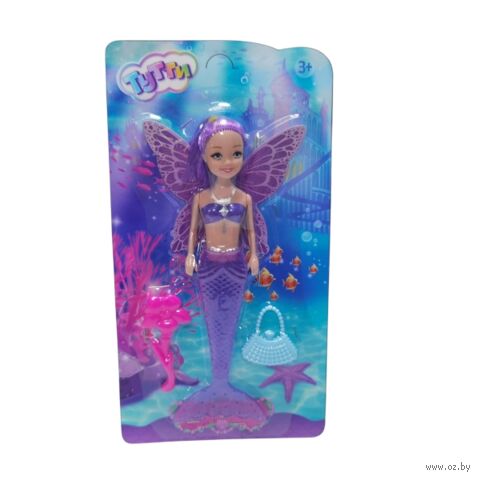 Милая куколка в образе русалки с крыльями и полупрозрачным хвостом, который светится при активации кнопки на спине, непременно понравится вашей малышке.