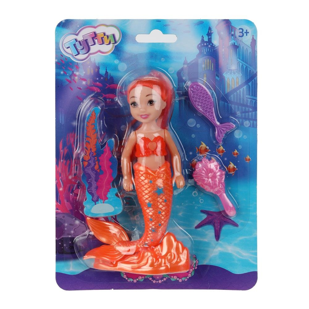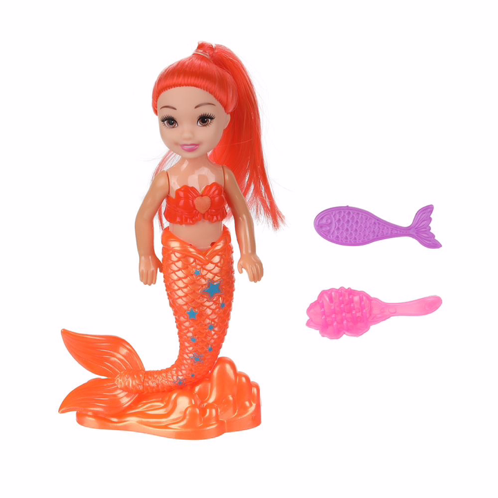 Милая куколка в образе русалки с ярким хвостом непременно понравится вашей малышке. У русалочки красивые длинные волосы оранжевого цвета, их можно заплетать в разнообразные причёски.