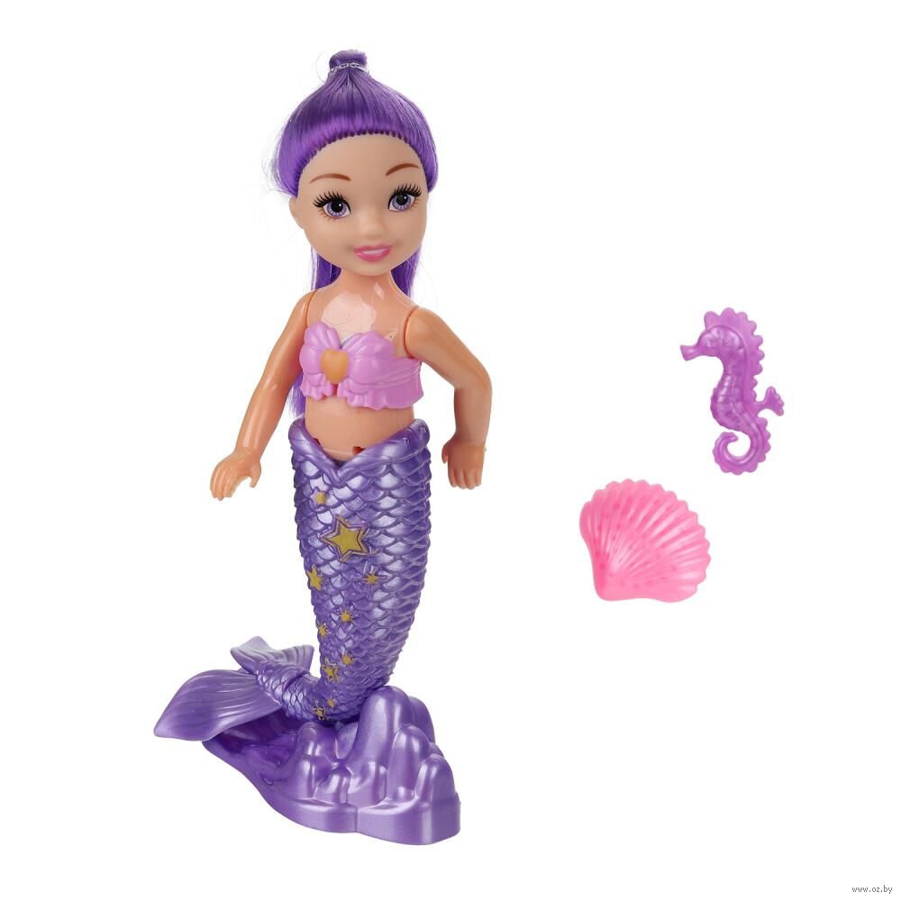 Милая куколка в образе русалки с ярким хвостом непременно понравится вашей малышке. У русалочки красивые длинные волосы оранжевого цвета, их можно заплетать в разнообразные причёски.