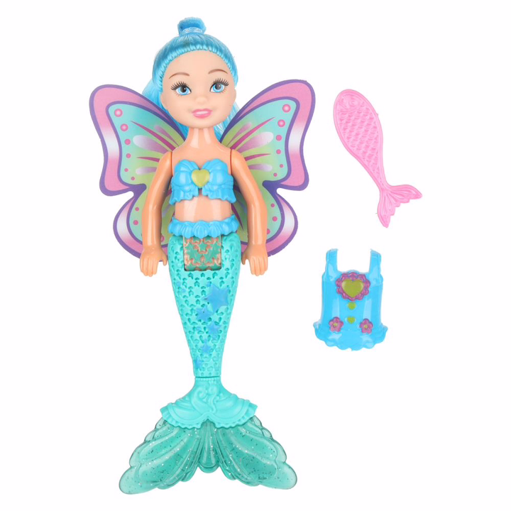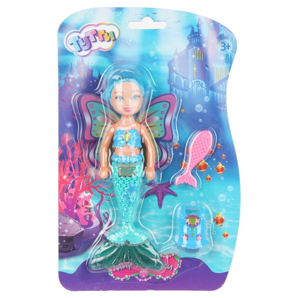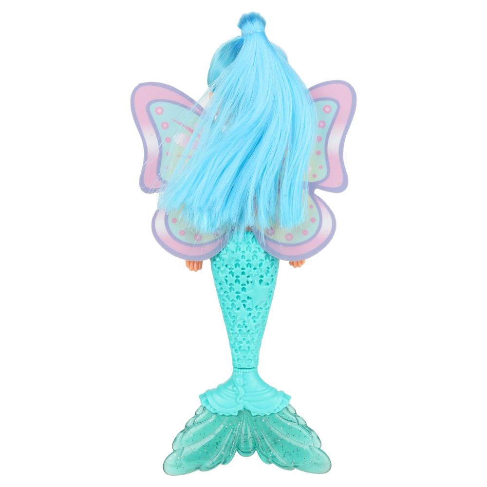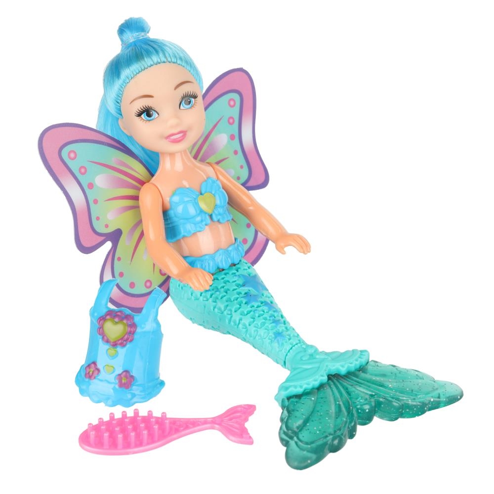 Милая куколка в образе русалки с яркими крыльями и красивым подвижным хвостом непременно понравится вашей малышке.