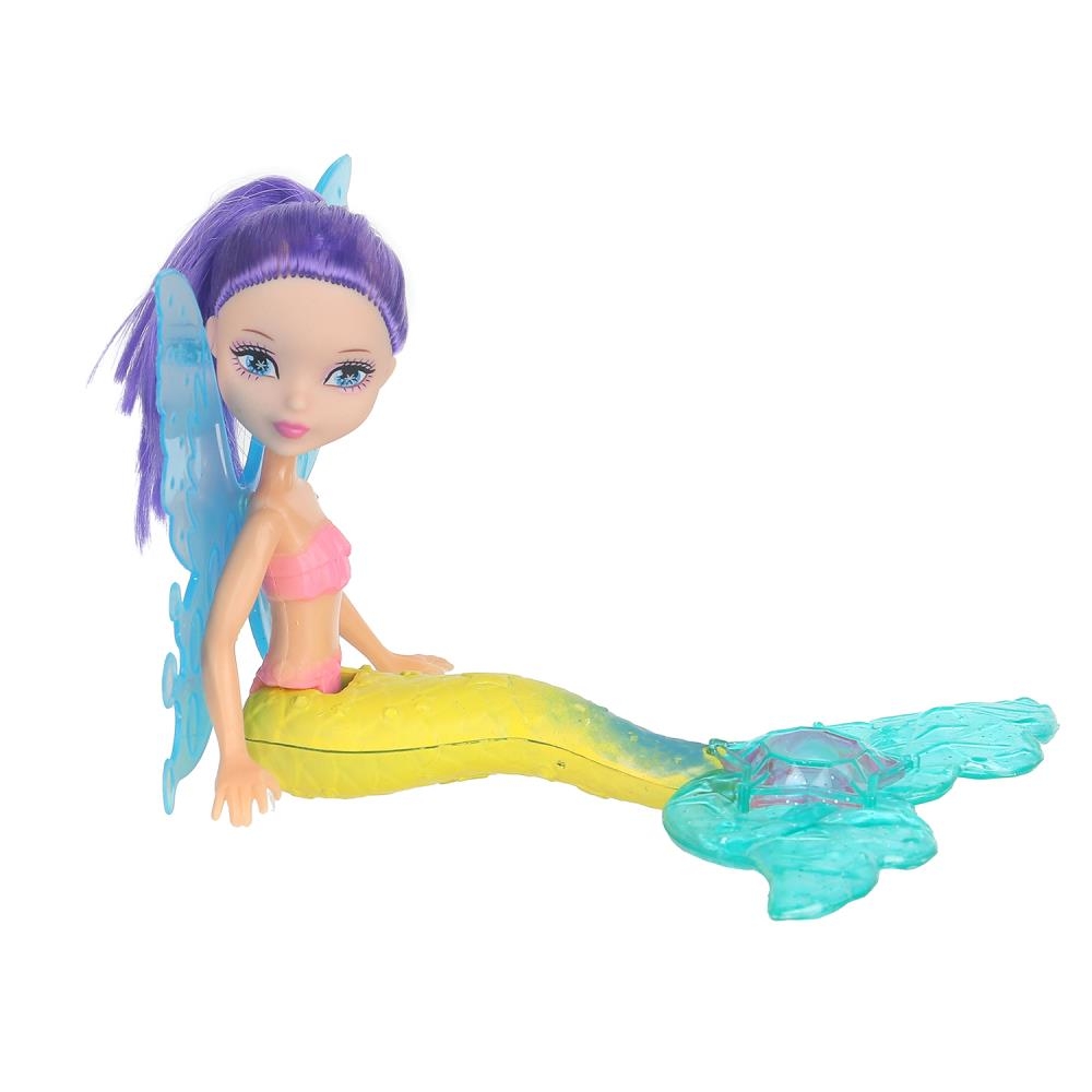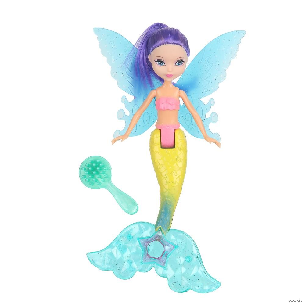 Милая куколка в образе русалки с полупрозрачными крыльями и красивым подвижным хвостом непременно понравится вашей малышке.
