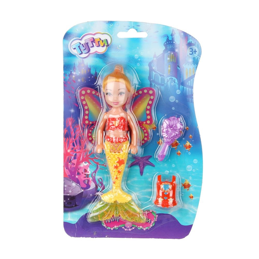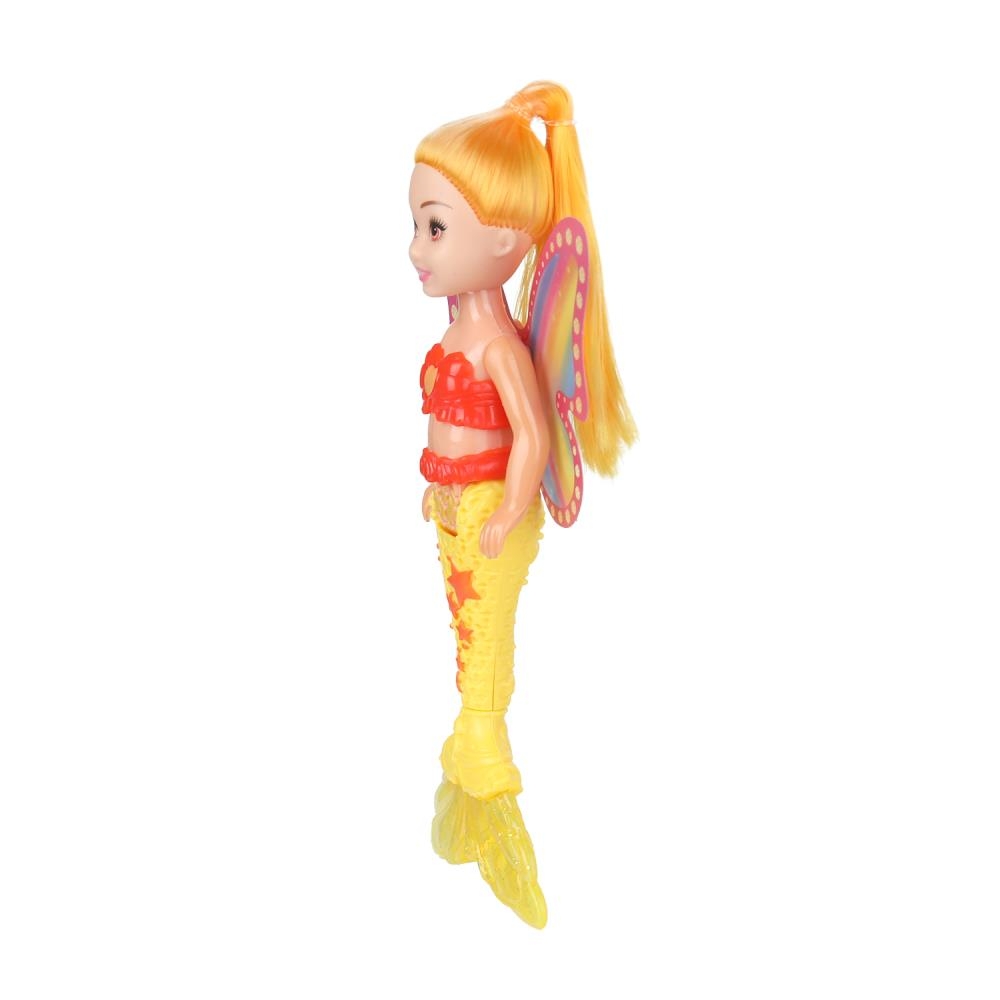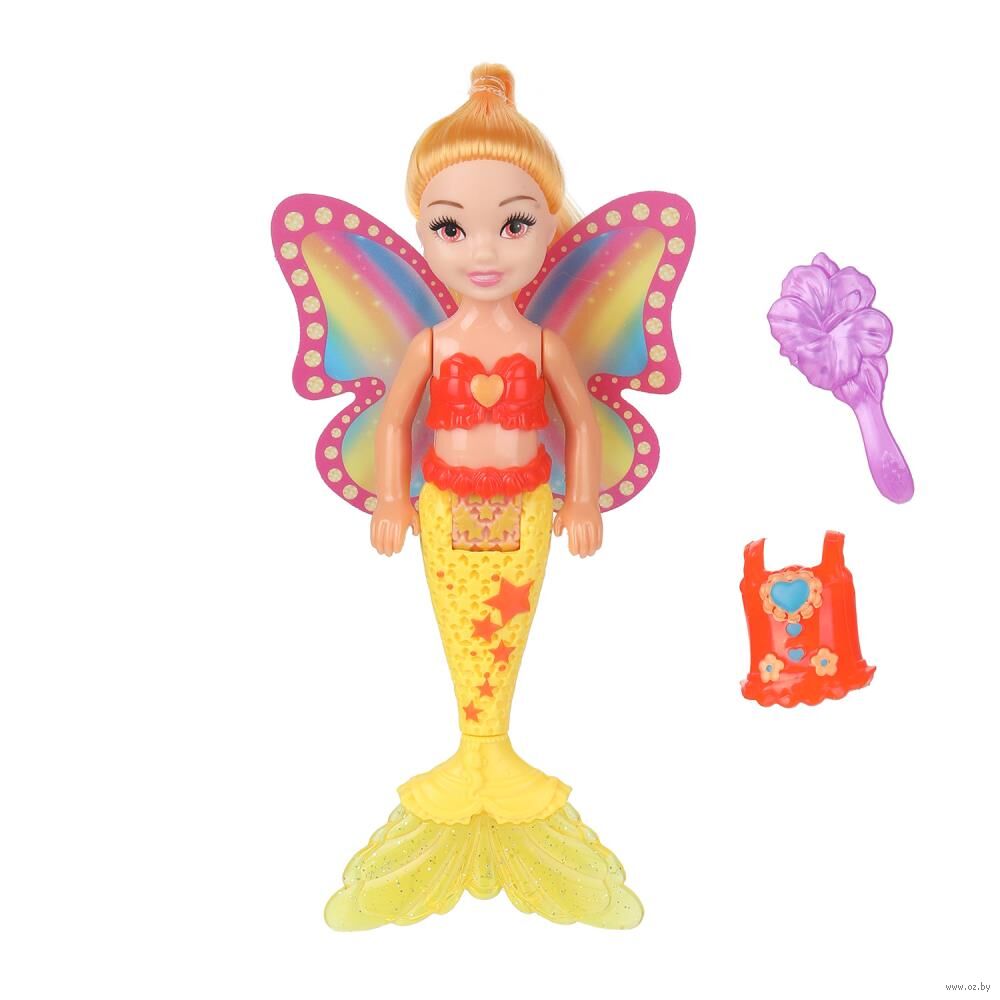 Милая куколка в образе русалки с яркими крыльями и красивым подвижным хвостом непременно понравится вашей малышке.