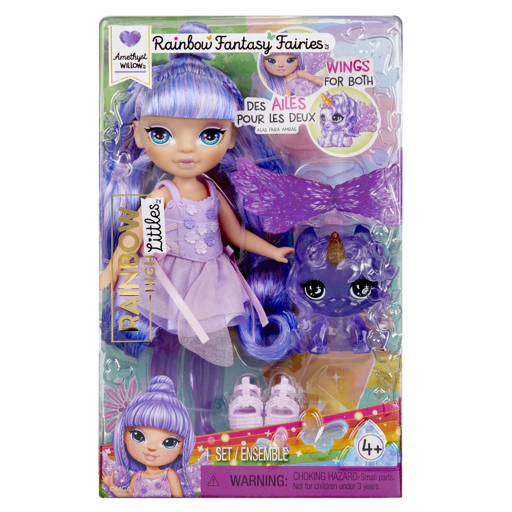 Фэнтези Литтлс Аметист – это кукла высотой 15 см с длинными густыми прошитыми волосами, подвижными ручками и ножками. Ноги куклы сделаны из цветного прозрачного материала.