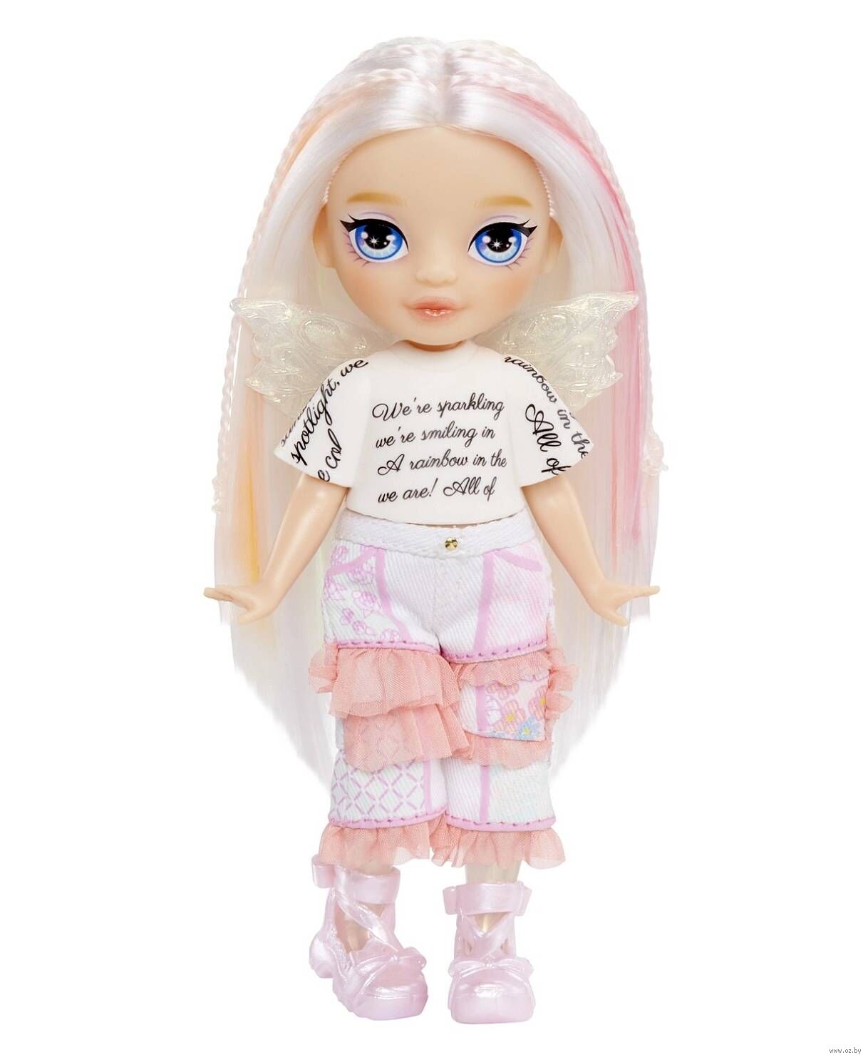 В наборе: модная кукла, комплект одежды и обуви, питомец, и съемные крылья, которые подходят как к кукле, так и к питомцу.