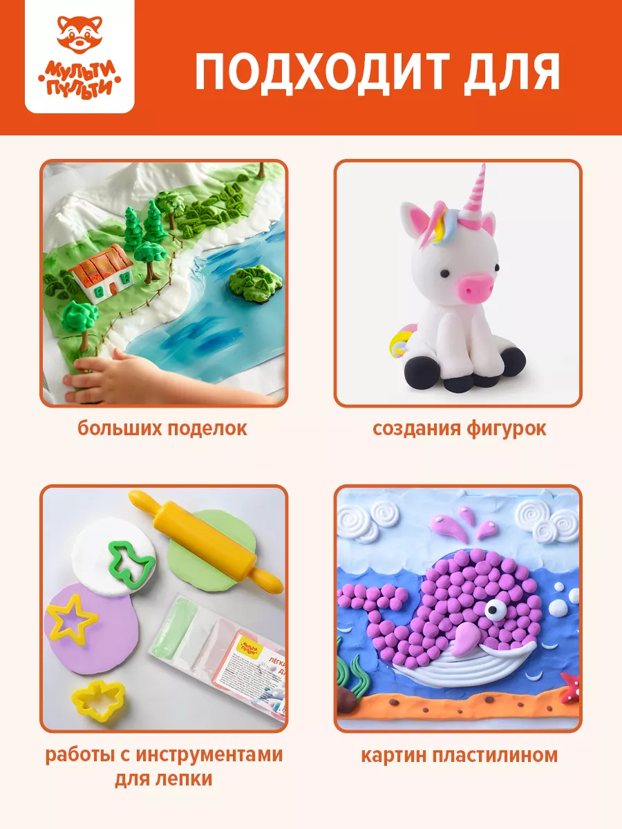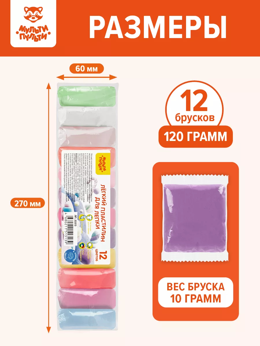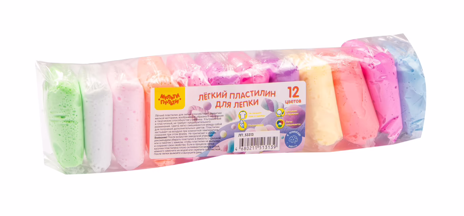 12 нежных популярных оттенков ультрамягкого воздушного пластилина от "Мульти-Пульти", не требуют предварительного разминания. Цвета легко смешиваются между собой для получения дополнительных оттенков. Пластилин застывает на воздухе при комнатной температуре и сохраняет форму.