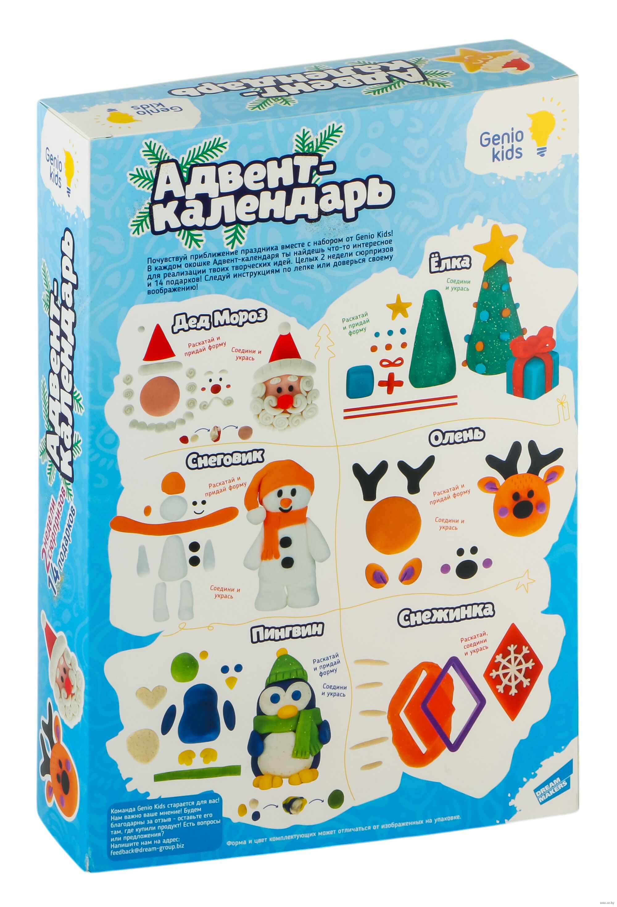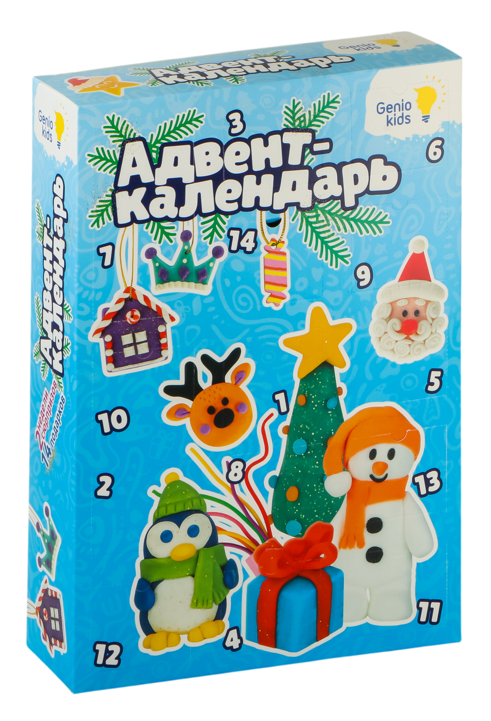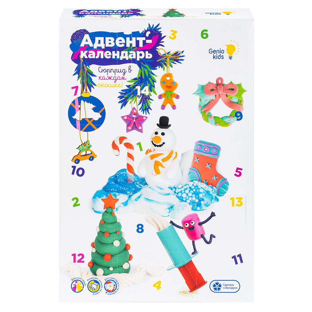 Почувствуй приближение праздника вместе с набором от Genio Kids! В каждом окошке адвент-календаря ты найдешь что-то интересное для реализации твоих творческих идей. Целых 2 недели сюрпризов и 14 подарков! Следуй инструкциям по лепке или доверься своему воображению.