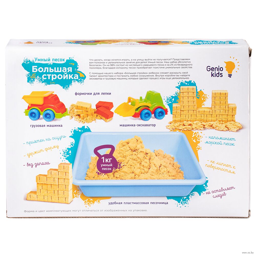 Умный песок Genio Kids – это неповторимый материал для лепки и творчества. Тактильно, он напоминает настоящий мокрый песок, только омытый волной. Игра с пластичным песком полезна для детей любого возраста.