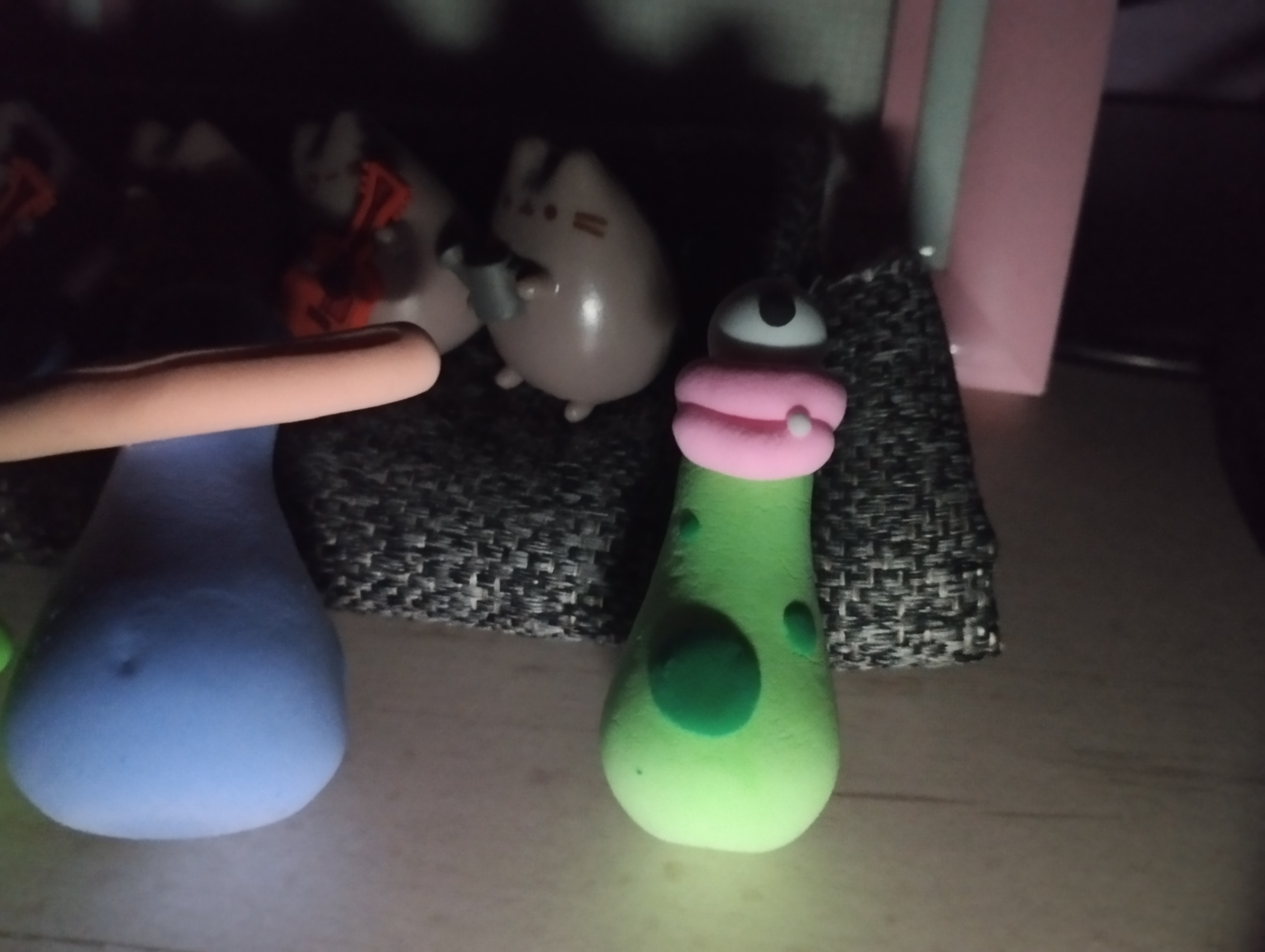 Очень качественный пластилин! Очень отличаются от тех, что я видела в других магазинах. Там воздушный пластилин полумертвый, а цвета на любителя. Склеиваются детали друг с другом отлично, фиг отлепишь при засыхании, что очень хорошо – фигурки получаются крепкими и легкими, не пачкаются, не разваливаются. Фотографии старые, сейчас у меня и сестры (19 и 16 лет нам, а не 9 и 6, между прочим) после наших батлов по лепке целая армия многоклеточных организмов, которые вышли очень забавными. Очень круто, если у вас будут ещё принадлежности для лепки, чтобы поправлять/срезать лишний пластилин.
