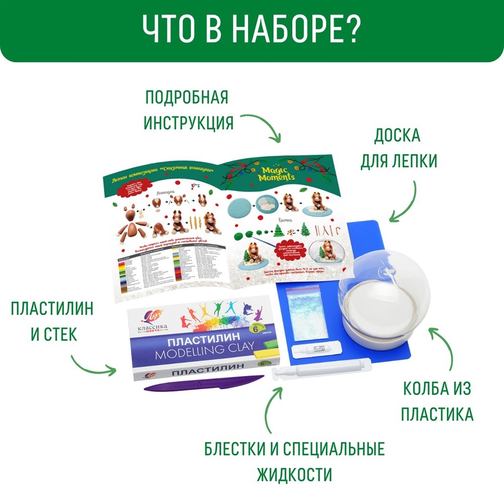 Очаровательная лошадка в облаке сияющих блёсток – такой красивый сувенир вы сможете создать своими руками благодаря набору для творчества «Лошадка». Внутри большой коробки есть все необходимое для создания волшебного шара и инструкция по сборке поделки. В ней мы также поэтапно показали, как слепить фигурку, поэтому повторить композицию с коробки получится у каждого! Также вы сможете поместить в шар любой сюжет на ваш выбор.