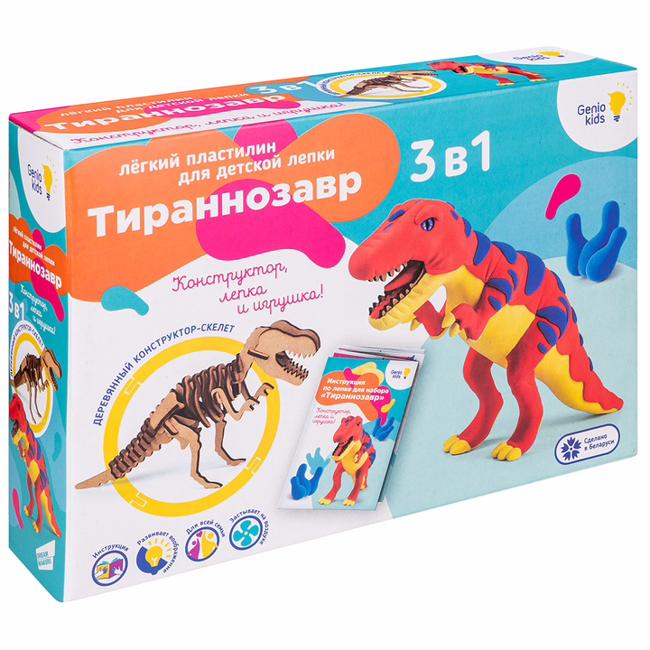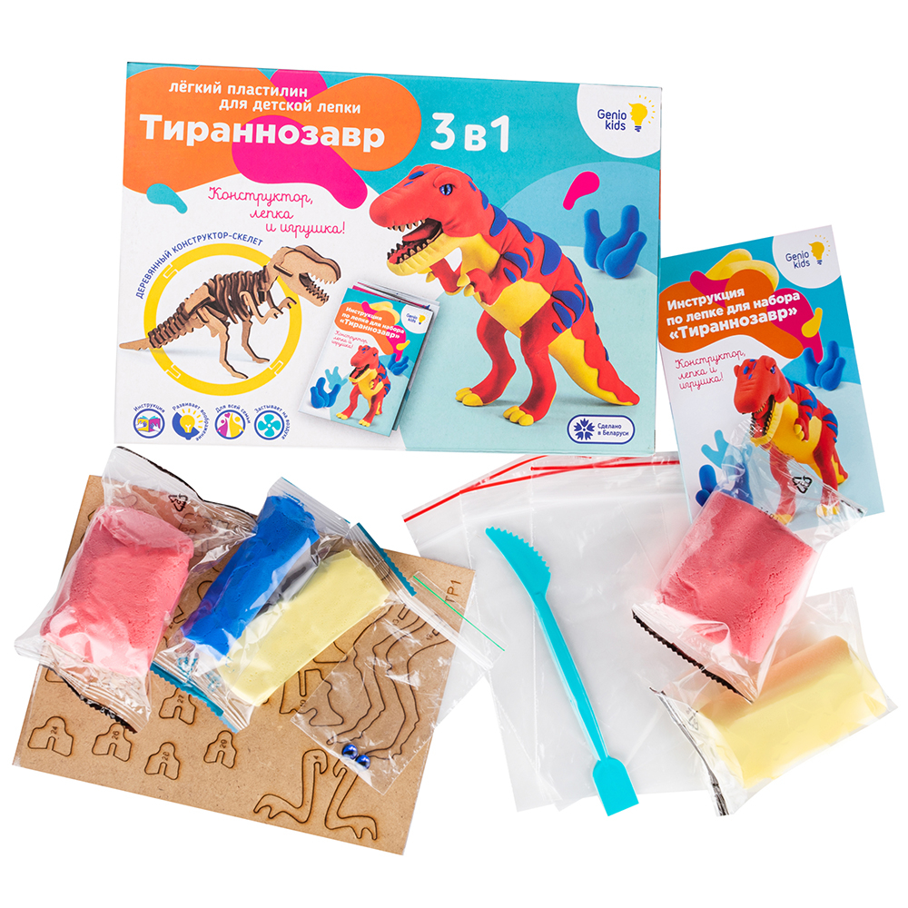 Создай своего собственного динозавра и перенесись во времена Юрского периода вместе с Genio Kids! Этот набор – сразу три занятия в одном: