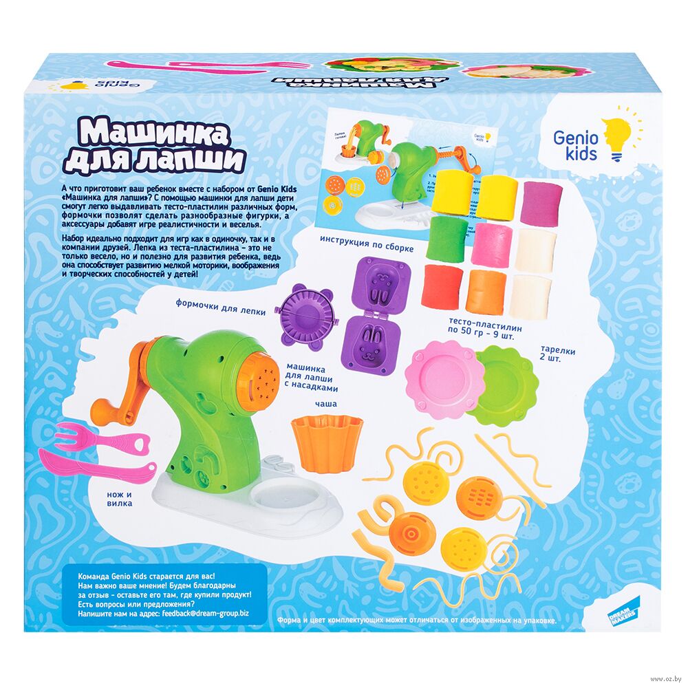 "Машинка для лапши" – набор из кулинарной линейки Крошка Шеф от Genio Kids. С помощью машинки для лапши дети смогут лего сделать разные виды макарон из теста-пластилина, формочки позволят сделать разнообразные ингредиенты для пасты, а аксессуары добавят игре реалистичности и веселья.