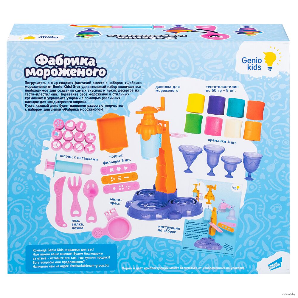 "Фабрика мороженого" – набор из кулинарной линейки Крошка Шеф от Genio Kids. Этот набор включает в себя всё необходимое для создания самых ярких десертов из теста-пластилина.