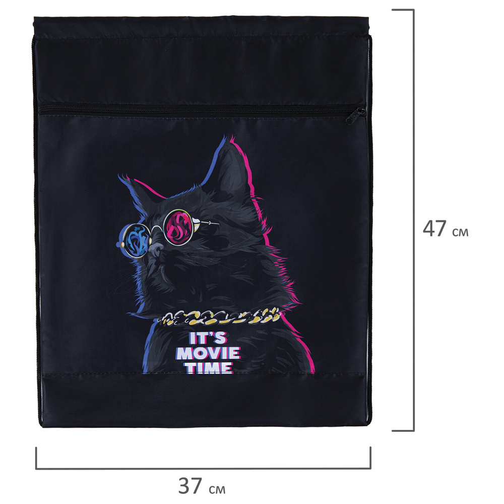 Мешок увеличенного объема (47х37 см) имеет одно основное вместительное отделение, а также увеличенный карман на молнии спереди, который позволит хранить уличную и сменную обувь, а также сменную одежду и другие принадлежности ребенка, отдельно друг от друга. Наличие петли позволяет носить его в руке и подвешивать на крючок в школе.