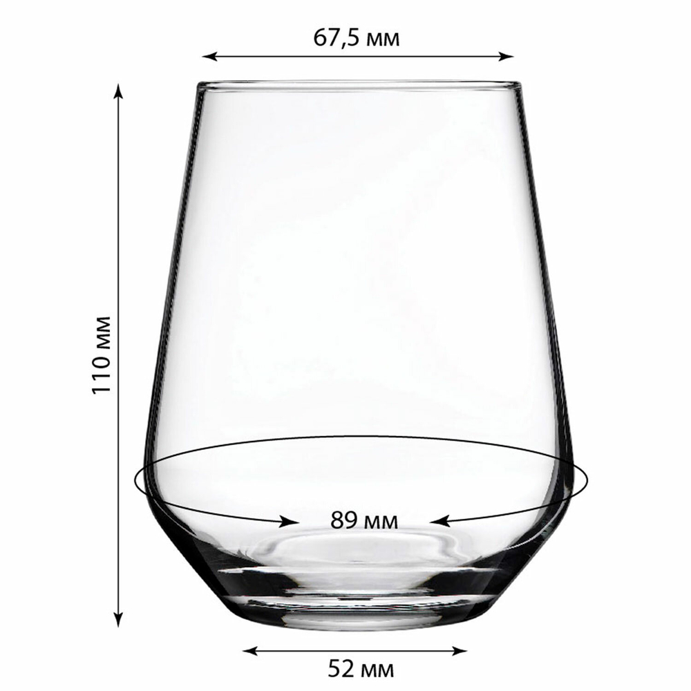 Диаметр верха стаканов – 67,5 мм, диаметр дна – 52 мм, высота – 110 мм.
