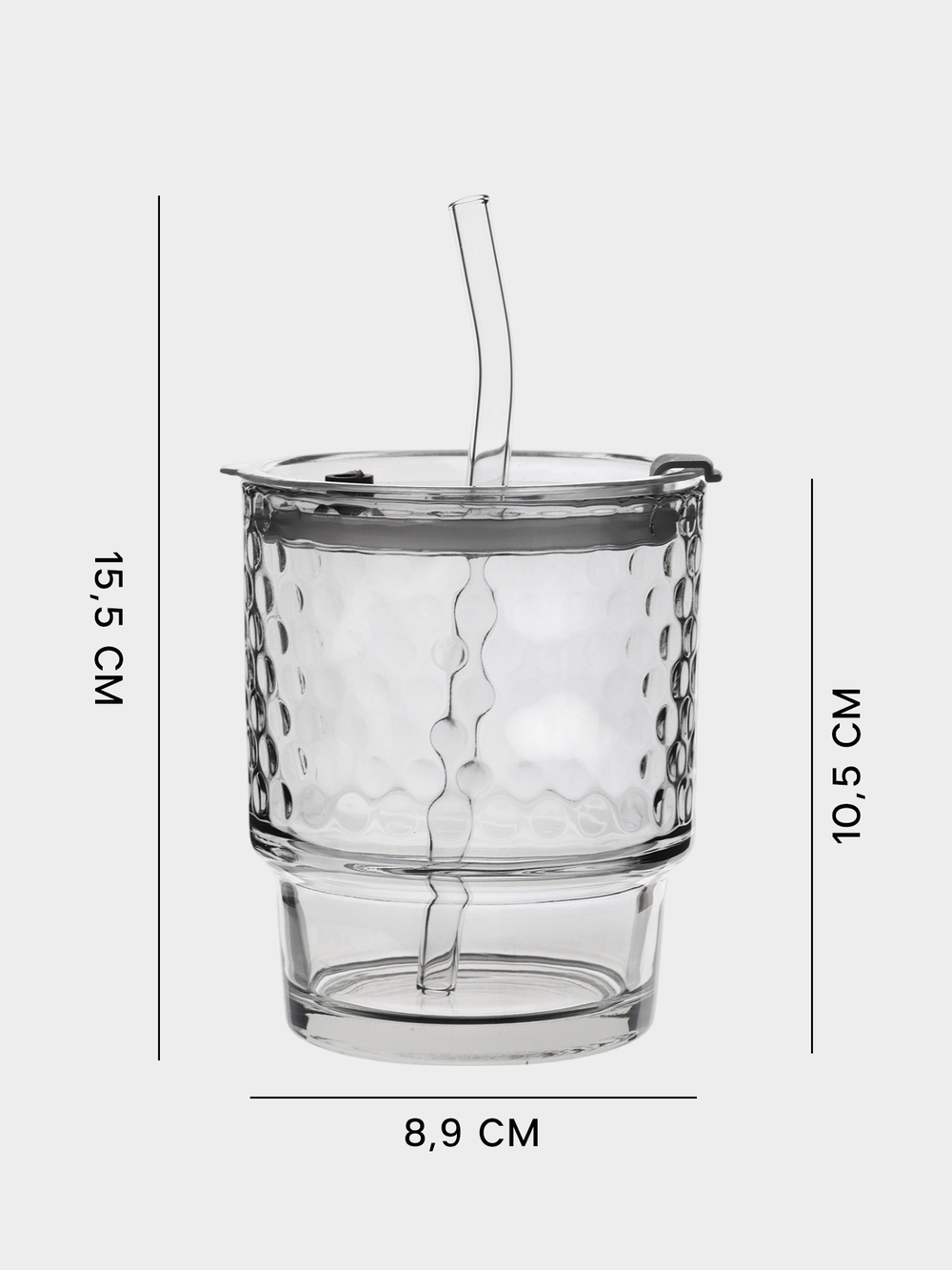 Объём 350 мл и размеры 9.5х9х12 см делают его идеальным выбором для освежающих напитков, утреннего кофе или сладких смузи.