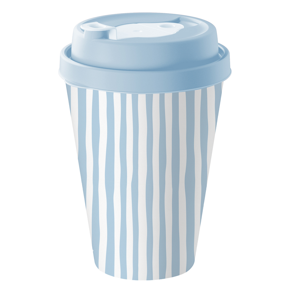 Стакан с крышкой имеет комфортный диаметр корпуса, удобно ложится в руку и подходит к подстаканникам в машине.