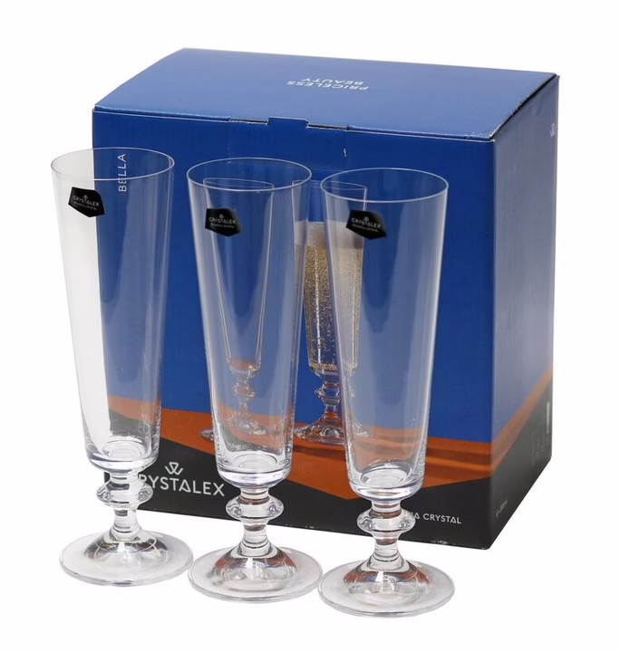 Набор из 6 стеклянных бокалов для шампанского. Эти изысканные бокалы созданы для того, чтобы придать вашим особым моментам долю роскоши и элегантности. "Crystalex" является символом высокого качества и изысканности, а его родина – Чехия, славится богатой историей стеклоделия.