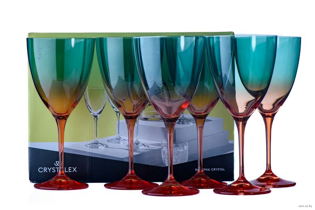 Набор бокалов для вина "Kate" (6 шт.; 400 мл; зелёно-красный)