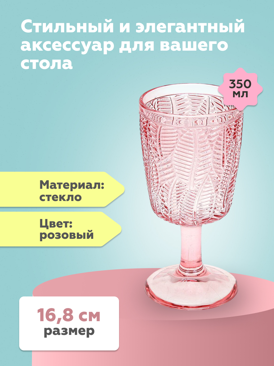 Бокал стеклянный "Листья" (350 мл; розовый)