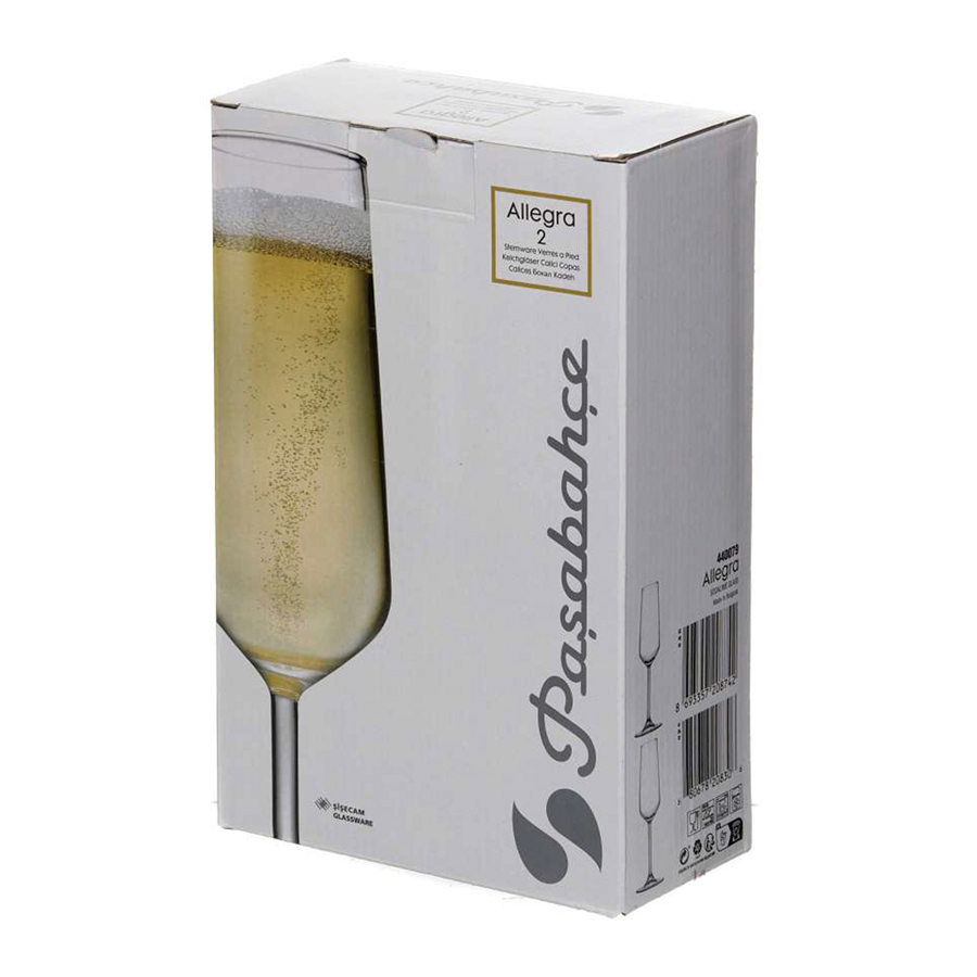 Набор и из двух бокалов для шампанского Pasabahce Allegra объемом по 195 мл, от известного бренда Pasabahce изготовлены из стекла.
