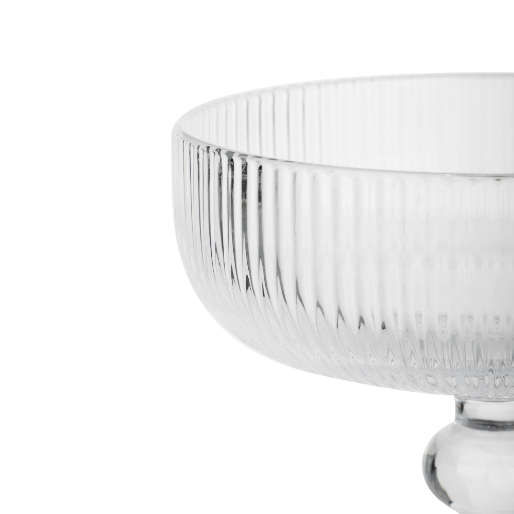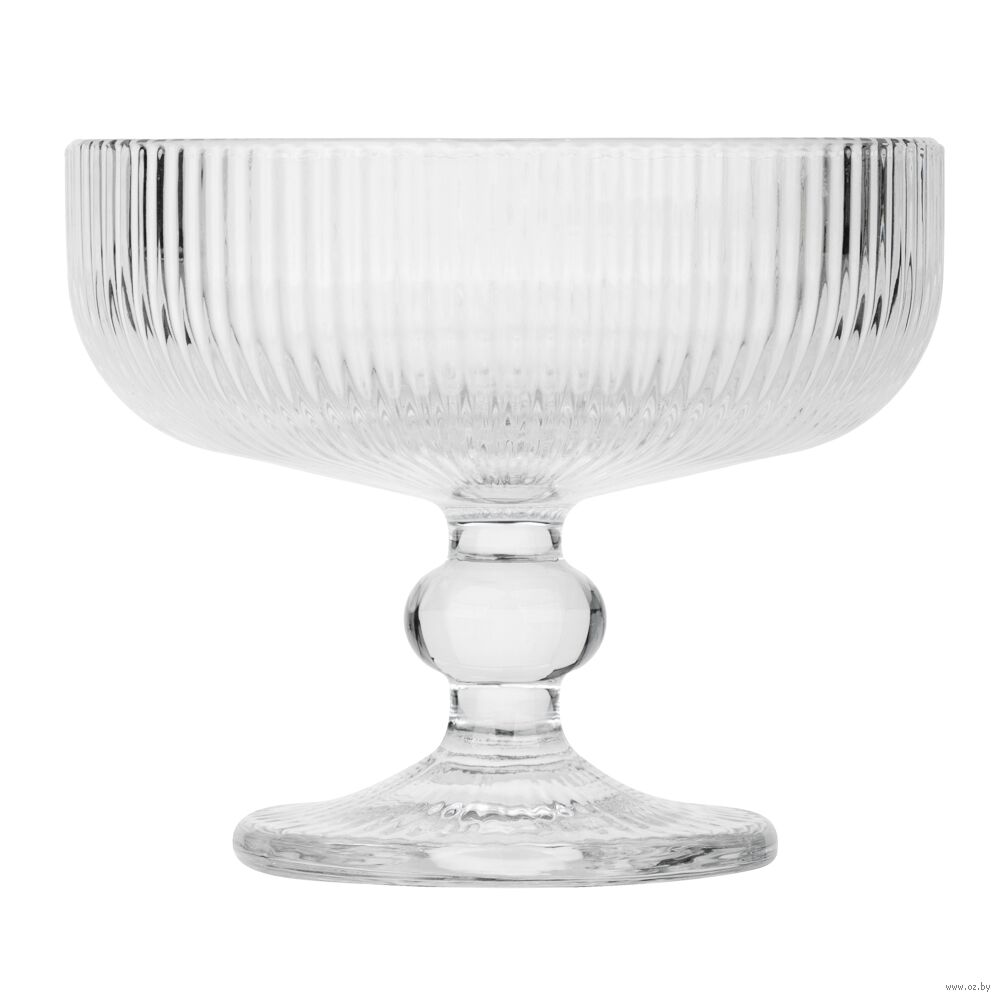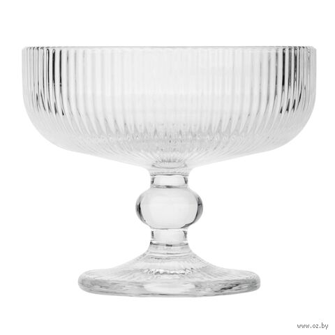 Элегантная креманка-бокал на ножке объемом 250 мл выполнена из прочного стекла серого цвета с изысканным рельефным узором. Универсальная форма позволяет использовать ее как для подачи шампанского и коктейлей, так и для десертов, мороженого или фруктовых салатов.