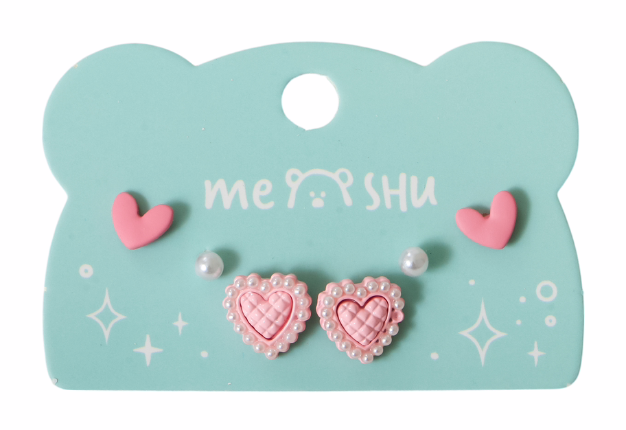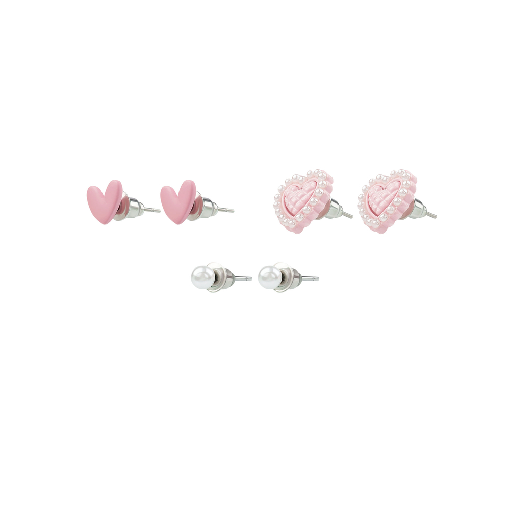 Серьги "Сердечки" (3 пары; розовый)