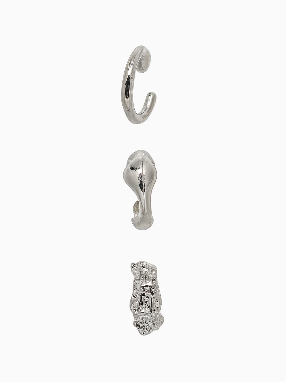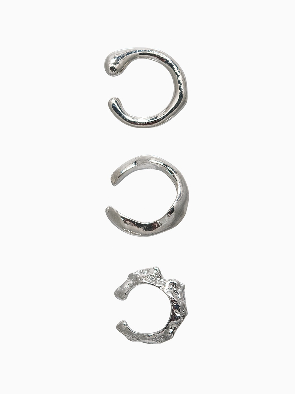Набор из трёх серебристых каффов с эффектом мятости предлагает современный взгляд на украшения без прокола, идеально подходящий для женщин, ценящих минимализм и оригинальность. Каждый кафф длиной 1,5 см изготовлен из качественного металла, что гарантирует долговечность и комфорт при носке.