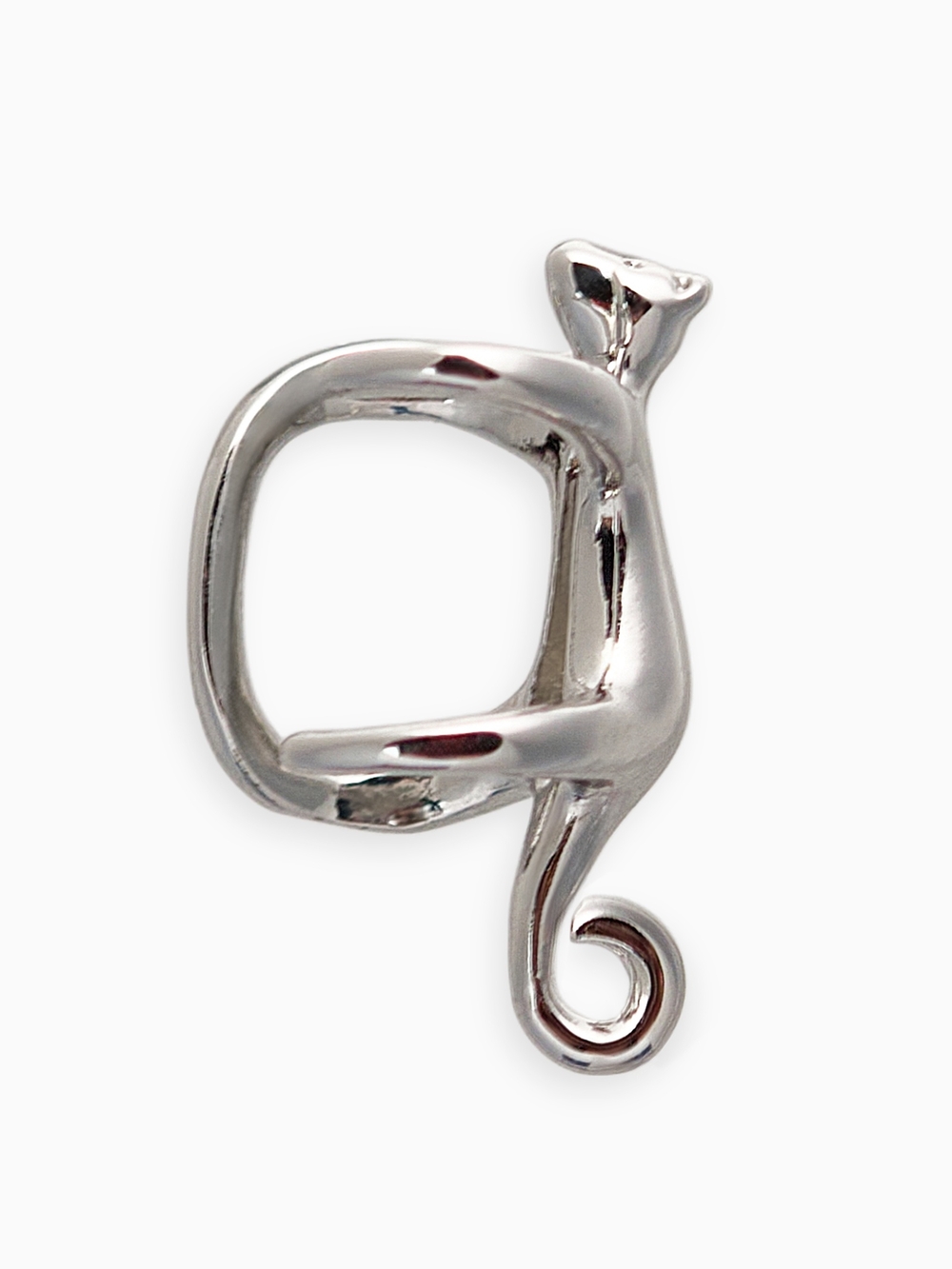 Серебристый кафф с изображением котика – аккуратное украшение для женщин, предпочитающих стильные и удобные аксессуары без прокола.