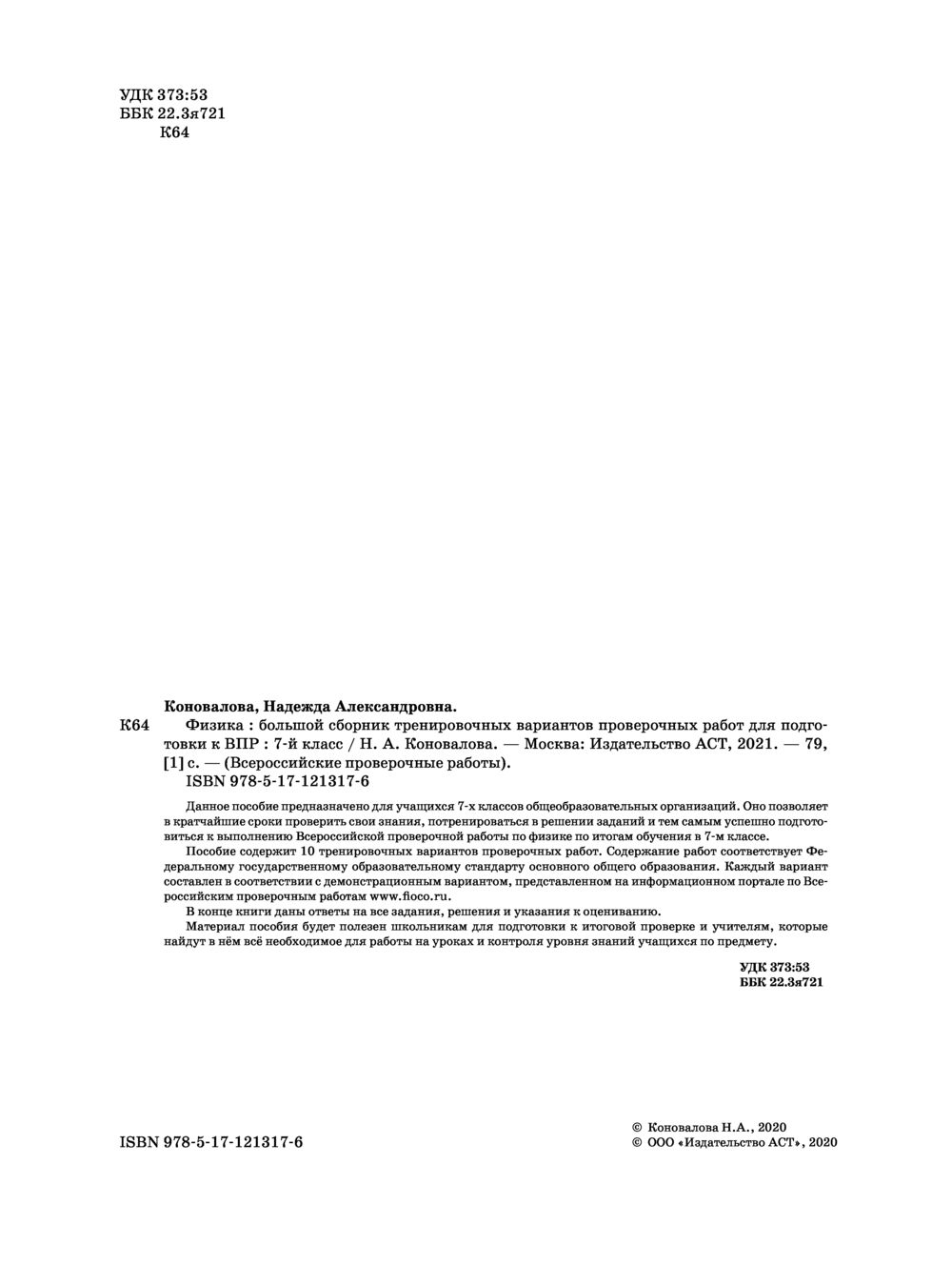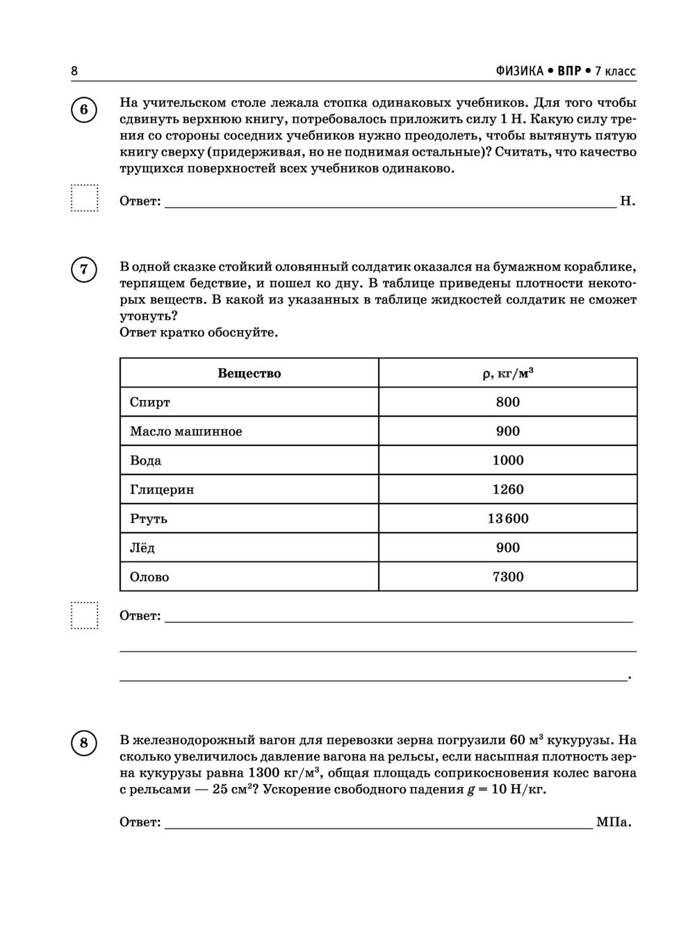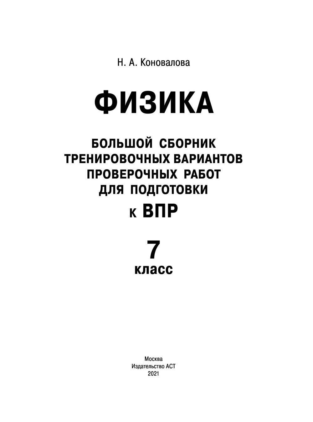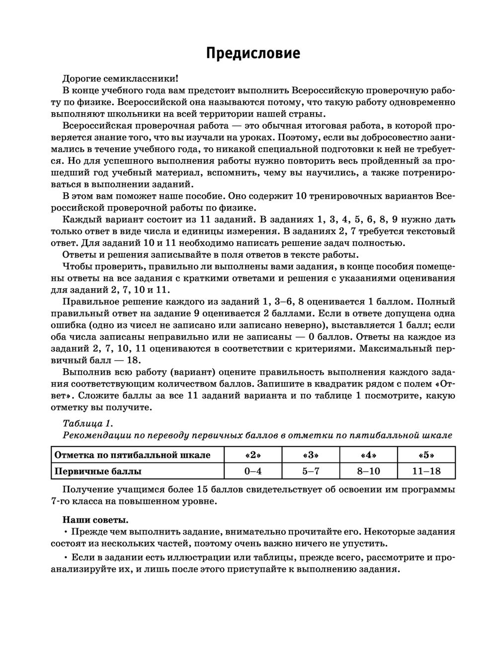 Данное пособие предназначено для учащихся 7-х классов общеобразовательных организаций. Оно позволяет в кратчайшие сроки проверить свои знания, потренироваться в решении заданий и тем самым успешно подготовиться к выполнению Всероссийской проверочной работы по физике по итогам обучения в 7-м классе.