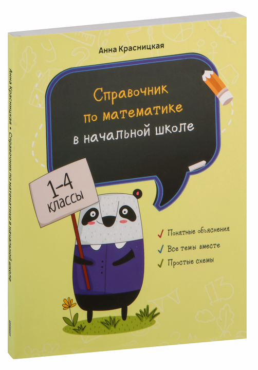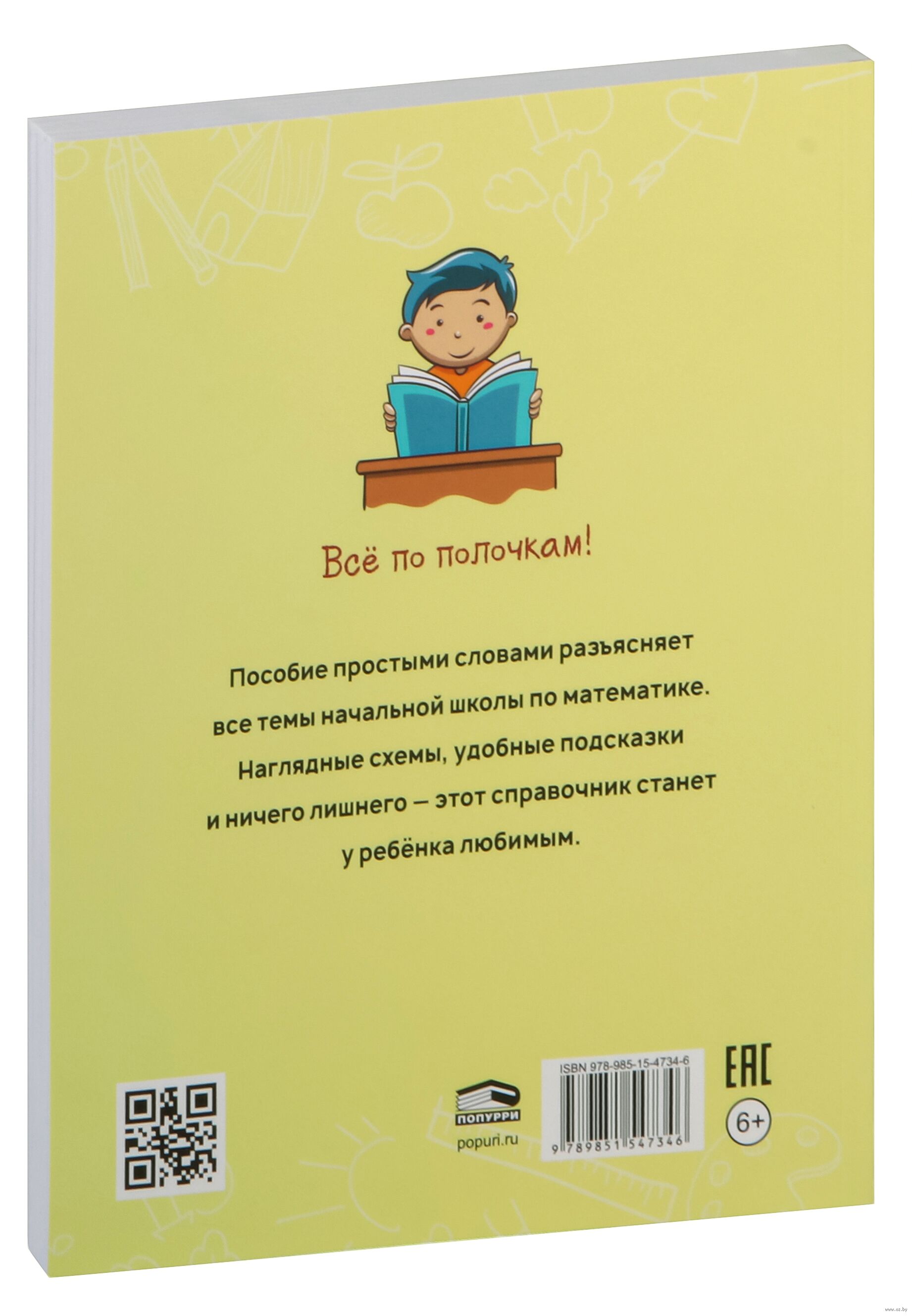 Пособие простыми словами разъясняет все темы начальной школы по математике. Наглядные схемы, удобные подсказки и ничего лишнего – этот справочник станет у ребёнка любимым.