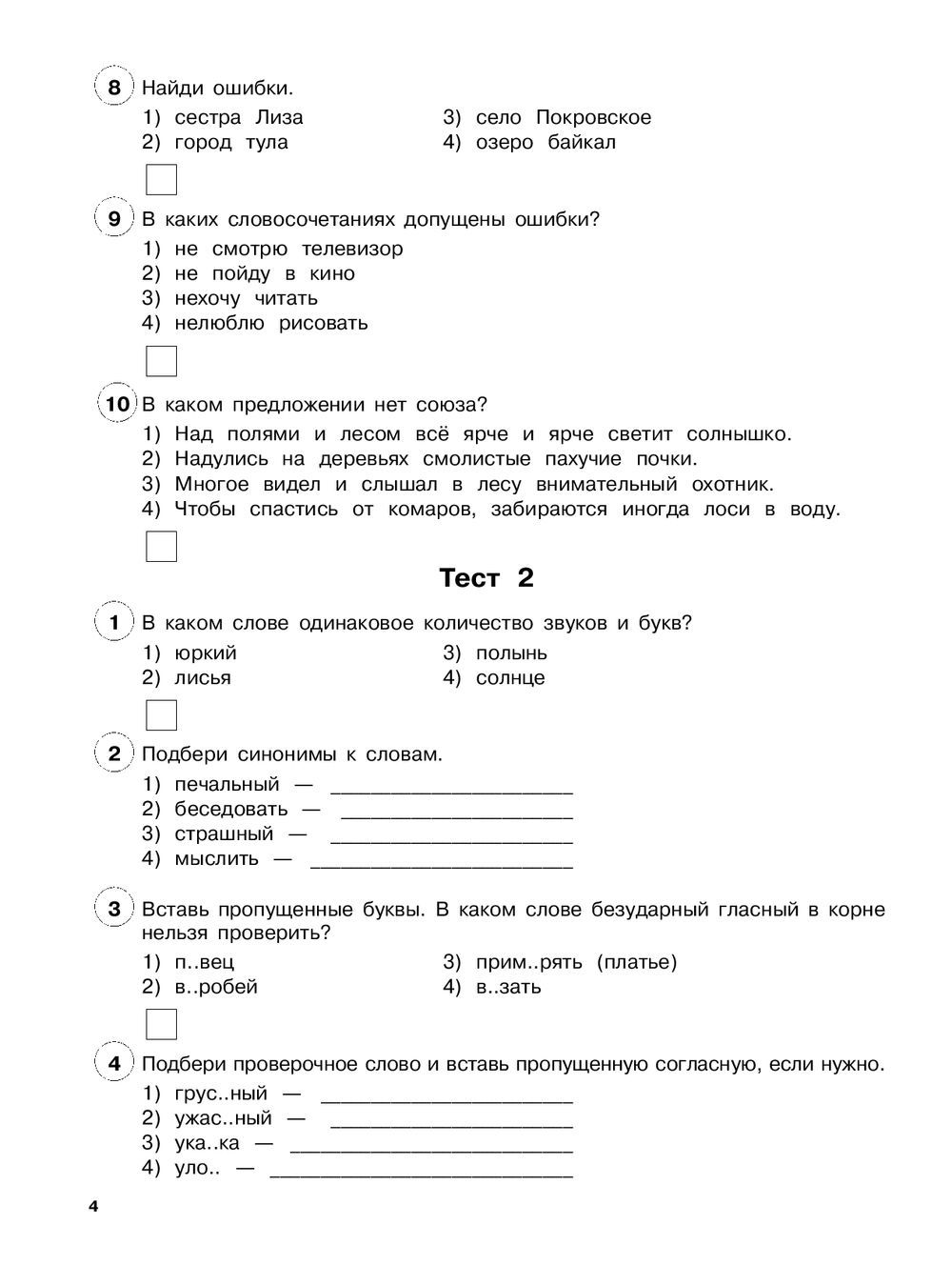 Тесты – современный, удобный, быстрый и качественный вид проверки и контроля знаний учащихся. Они предоставляют учащимся возможность проявить самостоятельность, индивидуальность, способствуют обучению младших школьников самоконтролю. Выполнение тестов вырабатывает навыки критического мышления: умение самостоятельно анализировать учебный вопрос, оценивать предлагаемые варианты ответов, делать выбор правильного ответа. При помощи тестирования можно установить уровень знаний учащегося по предмету в целом и по отдельным его разделам. В этом пособии предлагаются тесты по всем основным темам русского языка для 3-го класса: