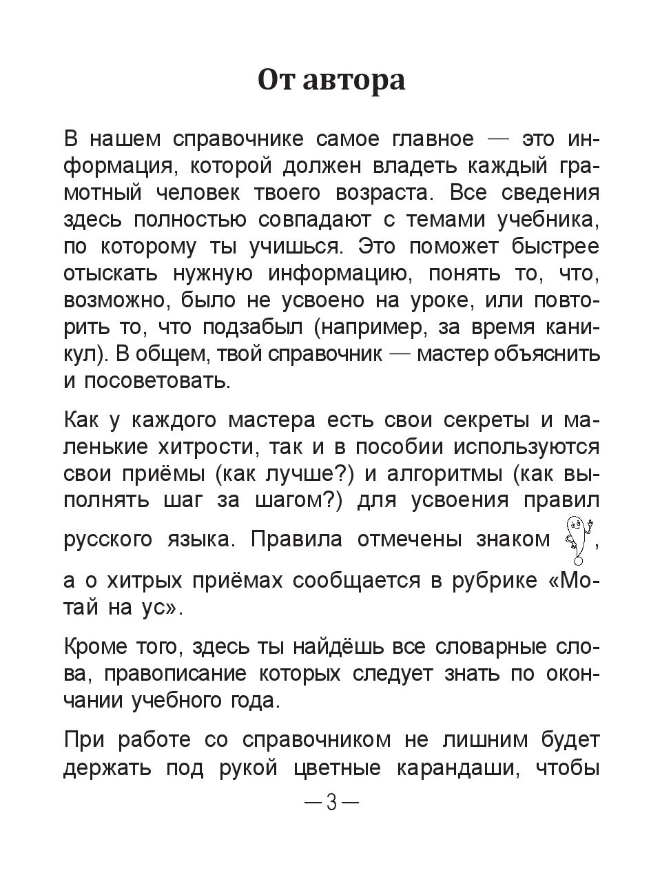 Пособие простыми словами разъясняет основные правила по русскому языку за курс 3 класса начальной школы. Наглядные схемы, удобные подсказки и ничего лишнего – этот справочник станет у ребёнка любимым.