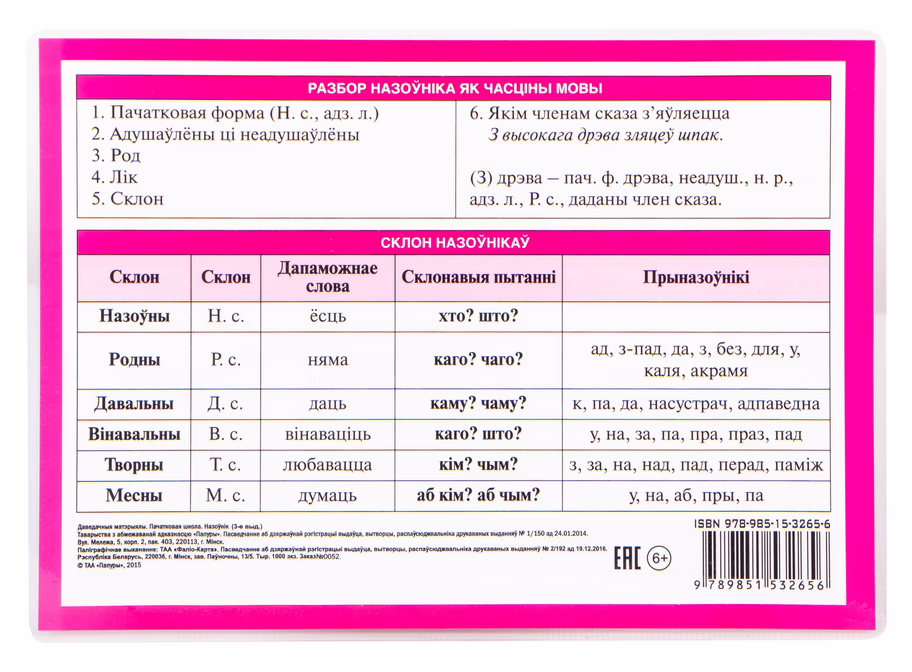 Эта серия учебных материалов представляет собой двухсторонние ламинированные карточки формата А4, А5 и А6, на которых в виде понятных таблиц приводятся компактно систематизированные сведения по предметам, что способствует их оптимальному усвоению и запоминанию. Ребёнок сможет в любой момент освежить в памяти нужный материал, а благодаря ламинированию таблички будет удобно всегда носить с собой (даже просто в рюкзаке) и это никак не отразится на их качестве – они не испортятся и не помнутся.