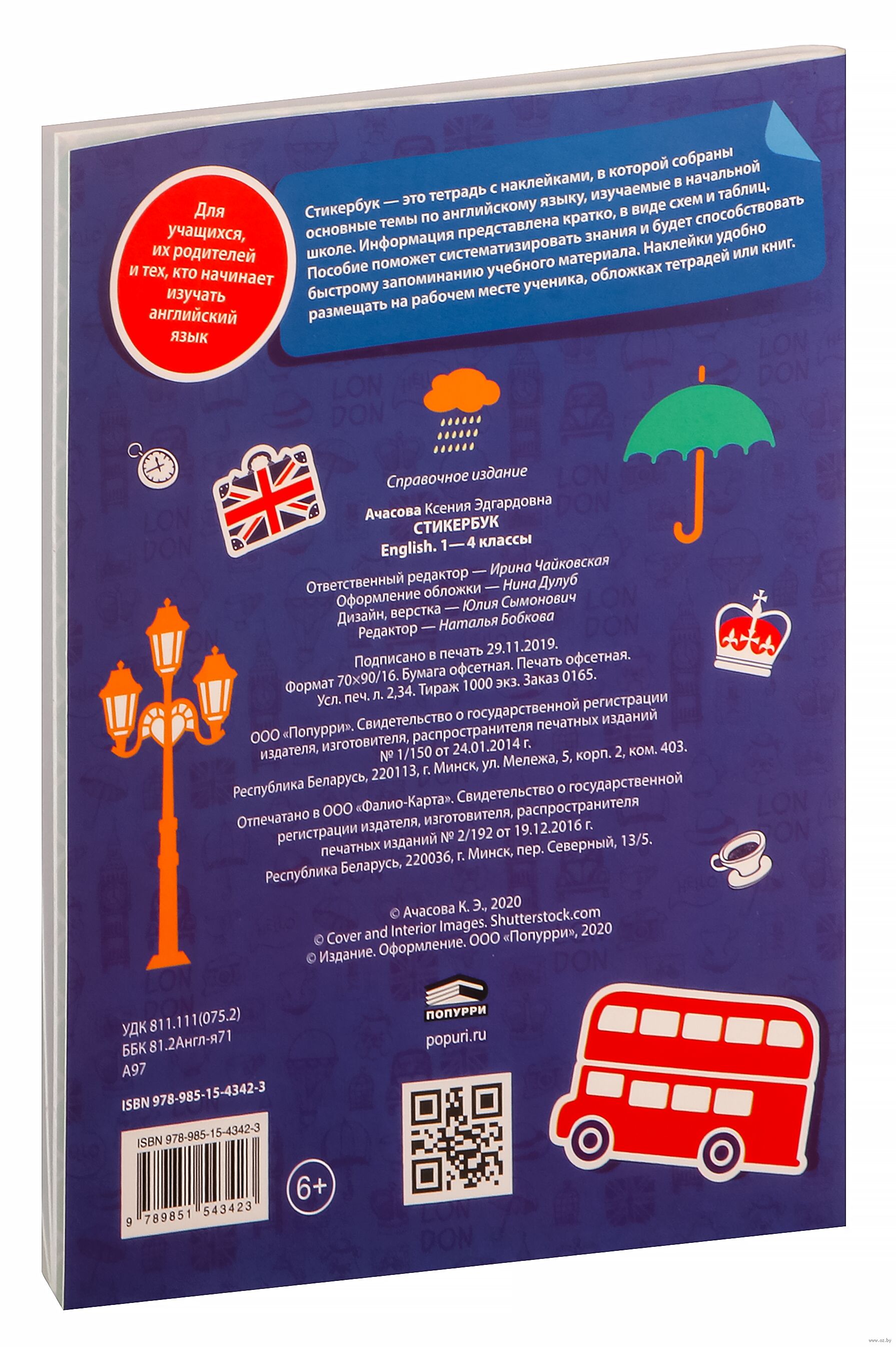 Стикербук – это тетрадь с наклейками, в которой собраны основные темы по английскому языку, изучаемые в начальной школе. Информация представлена кратко, в виде схем и таблиц. Пособие поможет систематизировать знания и будет способствовать быстрому запоминанию учебного материала. Наклейки удобно размещать на рабочем месте ученика, обложках тетрадей или книг.