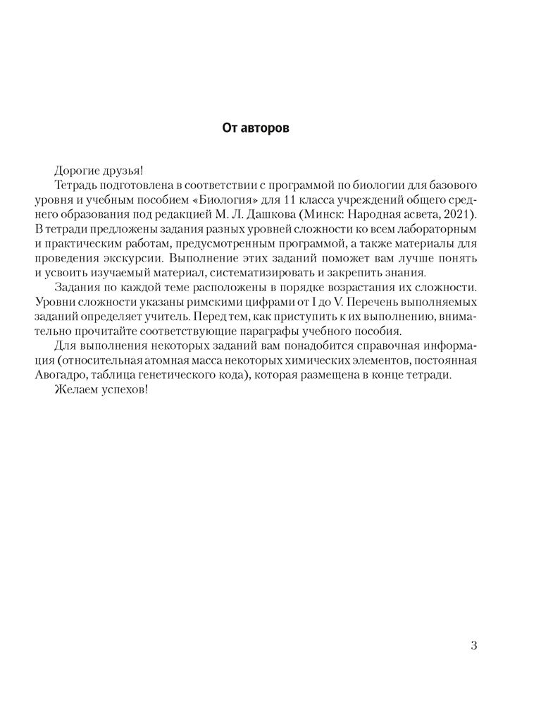 Тетрадь подготовлена в соответствии с учебной программой для базового уровня и учебным пособием "Биология" для 11 класса (под редакцией М. Л. Дашкова). В издании содержатся разноуровневые задания ко всем лабораторным и практическим работам, предусмотренным программой, а также материалы для проведения экскурсии. Задания могут использоваться как для самостоятельной работы учащихся, так и для работы под руководством учителя. Занятия с тетрадью будут способствовать лучшему усвоению учебного материала, его закреплению и систематизации.