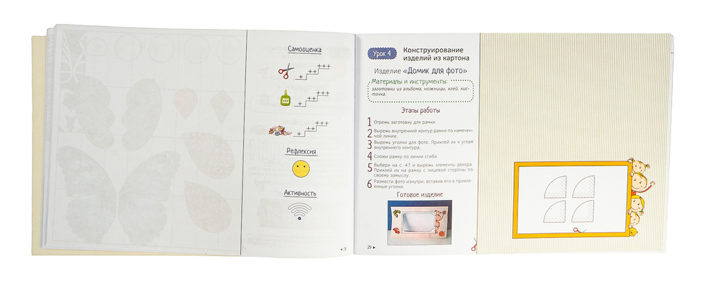 Альбом соответствует учебной программе и предназначен для проведения занятий по трудовому обучению в 3 классе. К каждому уроку предлагается список необходимых материалов и инструментов, схемы изготовления изделий, цветные заготовки, образцы поделок, а также система самооценки. Выполняя задания, третьеклассники будут с лёгкостью и интересом творить своими руками.