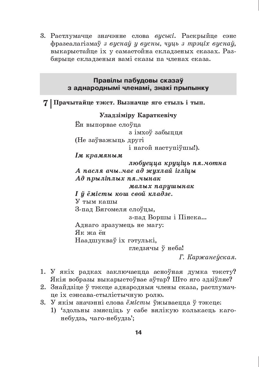 Матэрыялы, змешчаныя ў дапаможніку, маюць практыкаарыентаваны характар, прызначаны для фарміравання моўнай, маўленчай, камунікатыўнай, рытарычнай, лінгвакультуралагічнай і сацыякультурнай кампетэнцый і накіраваны на засваенне вучнямі вучэбнага матэрыялу пры ажыццяўленні розных відаў дзейнасці: пазнавальнай, камунікатыўнай, пошукавай, творчай і інш.