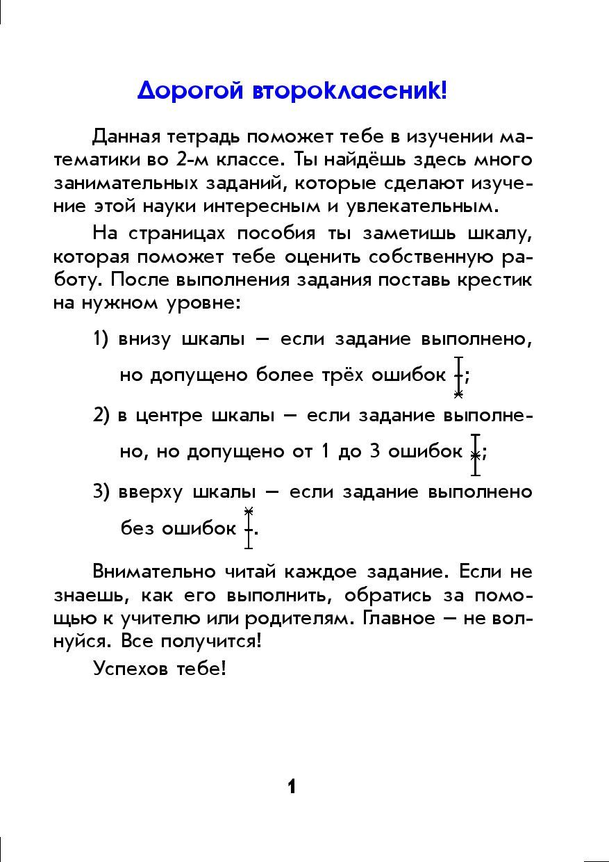Пособие направленно на организацию самостоятельной работы школьников и формирование навыков самоконтроля учащихся вторых классов по математике.