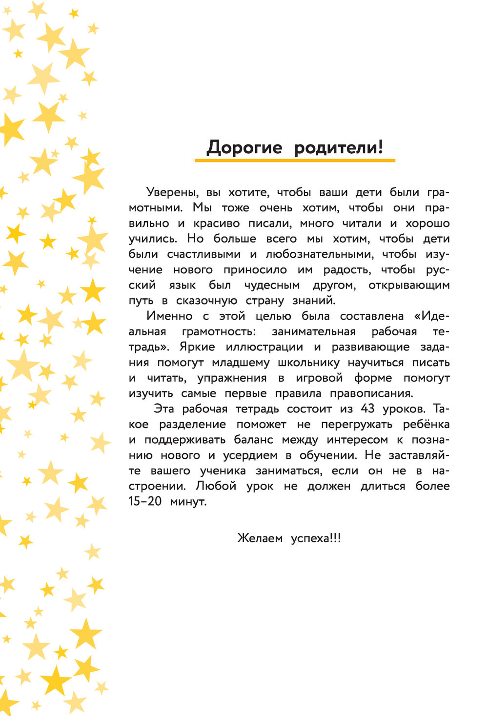 Данное издание представляет собой рабочую тетрадь для обучения детей русскому языку и состоит из 43 уроков с разнообразными заданиями. Разделение на уроки позволит не перегружать ребёнка и поддерживать его интерес к обучению.