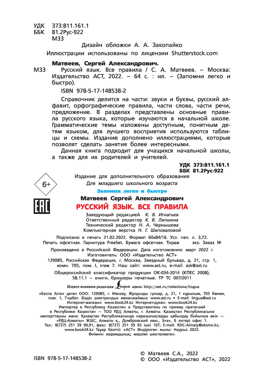 | Изготовитель | Творческое кооперативное объединение «АСТ». 129085, РФ, г. Москва, б-р Звездный, 21, стр. 1 |