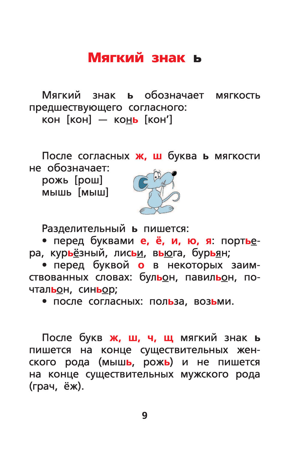 Справочник делится на части: звуки и буквы, русский алфавит, орфографические правила, части слова, части речи, предложение. В разделах представлены основные правила русского языка, которые изучаются в начальной школе. Грамматические темы изложены доступным, понятным детям языком, для лучшего восприятия используются таблицы и схемы. Издание дополнено иллюстрациями, которые позволят сделать занятия более интересными.