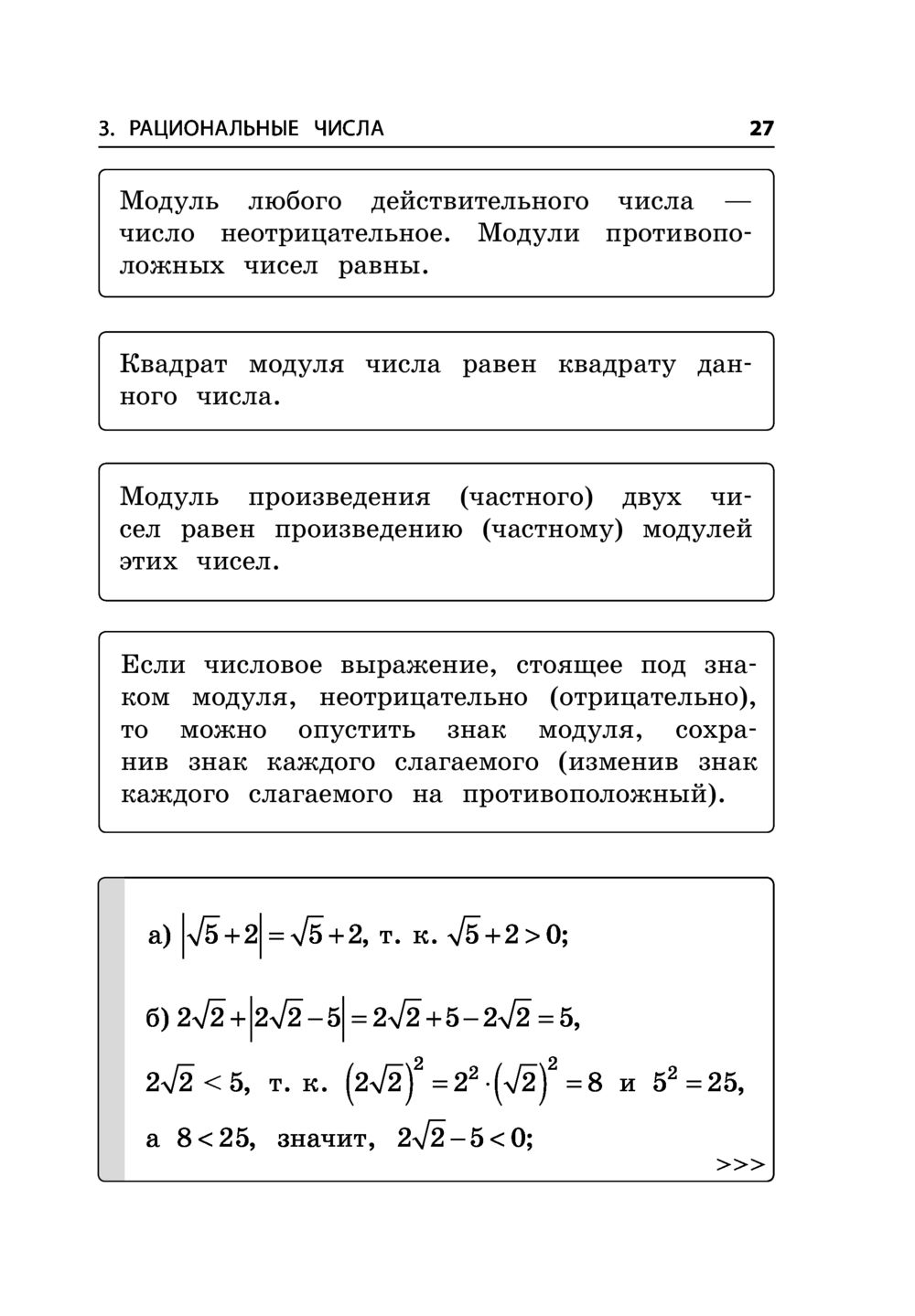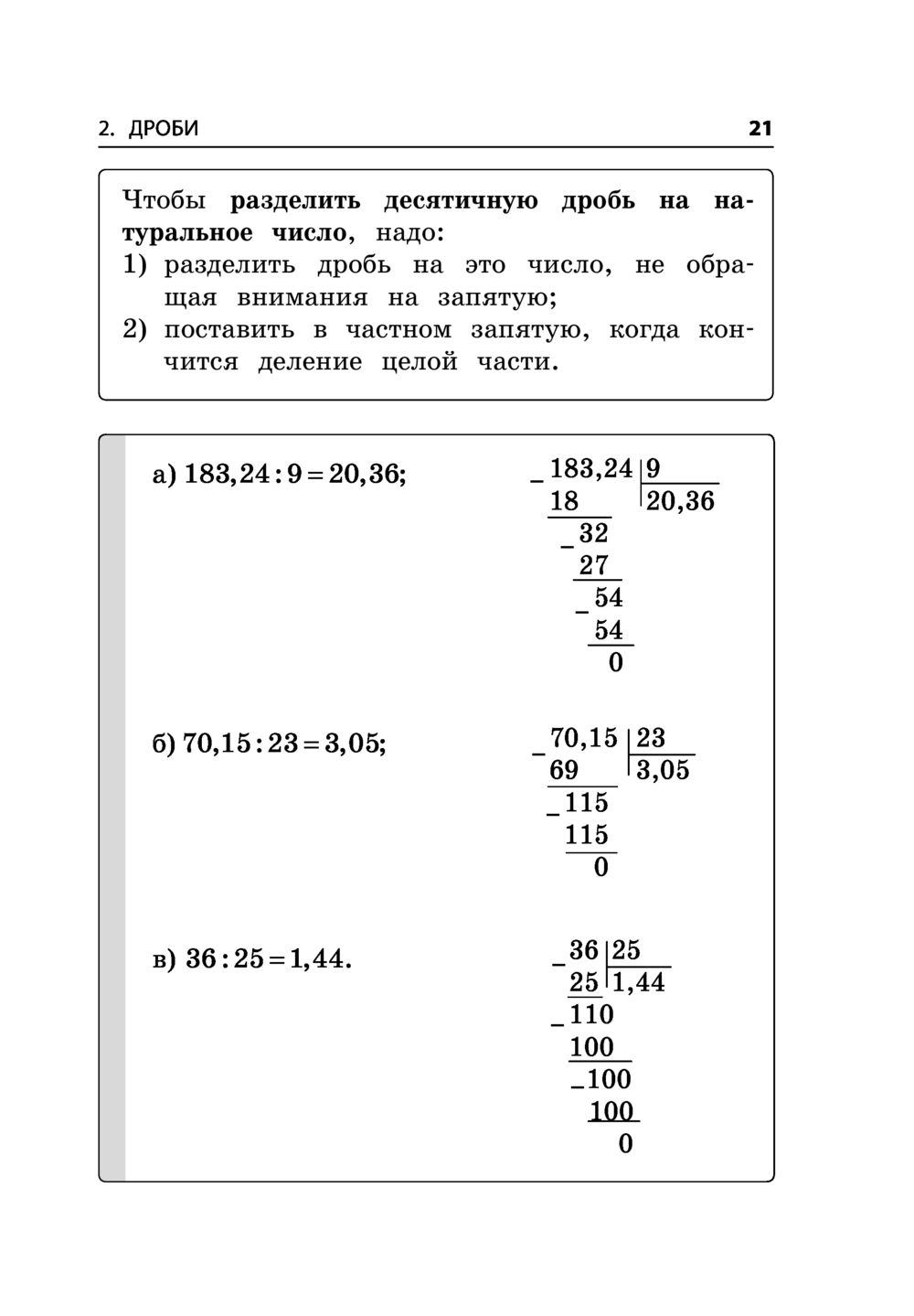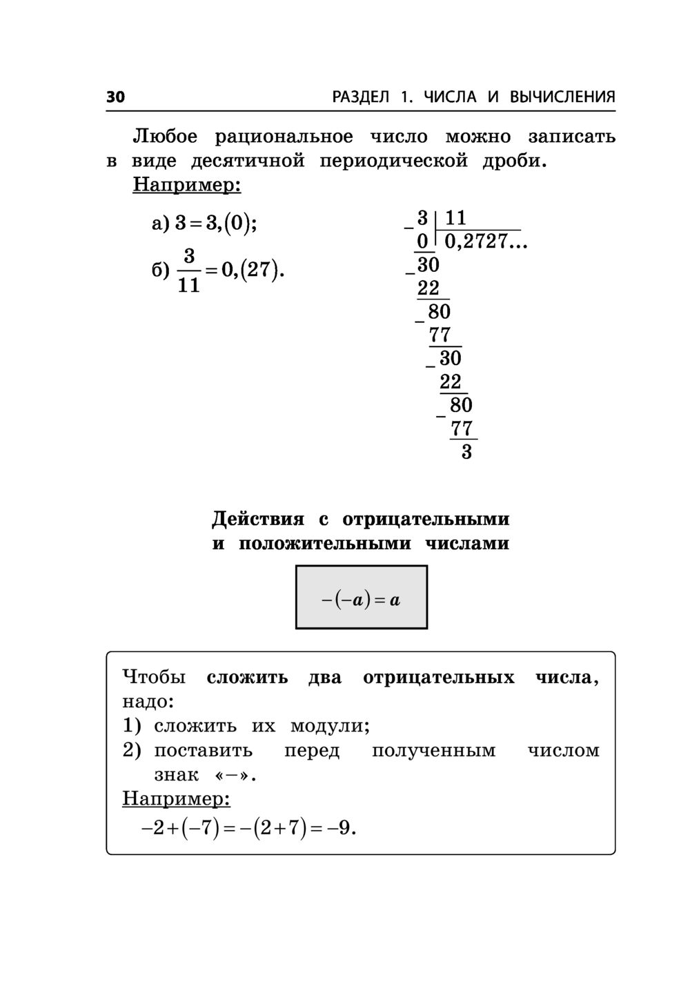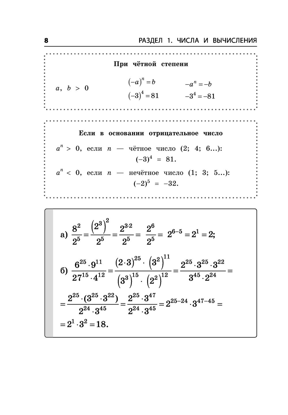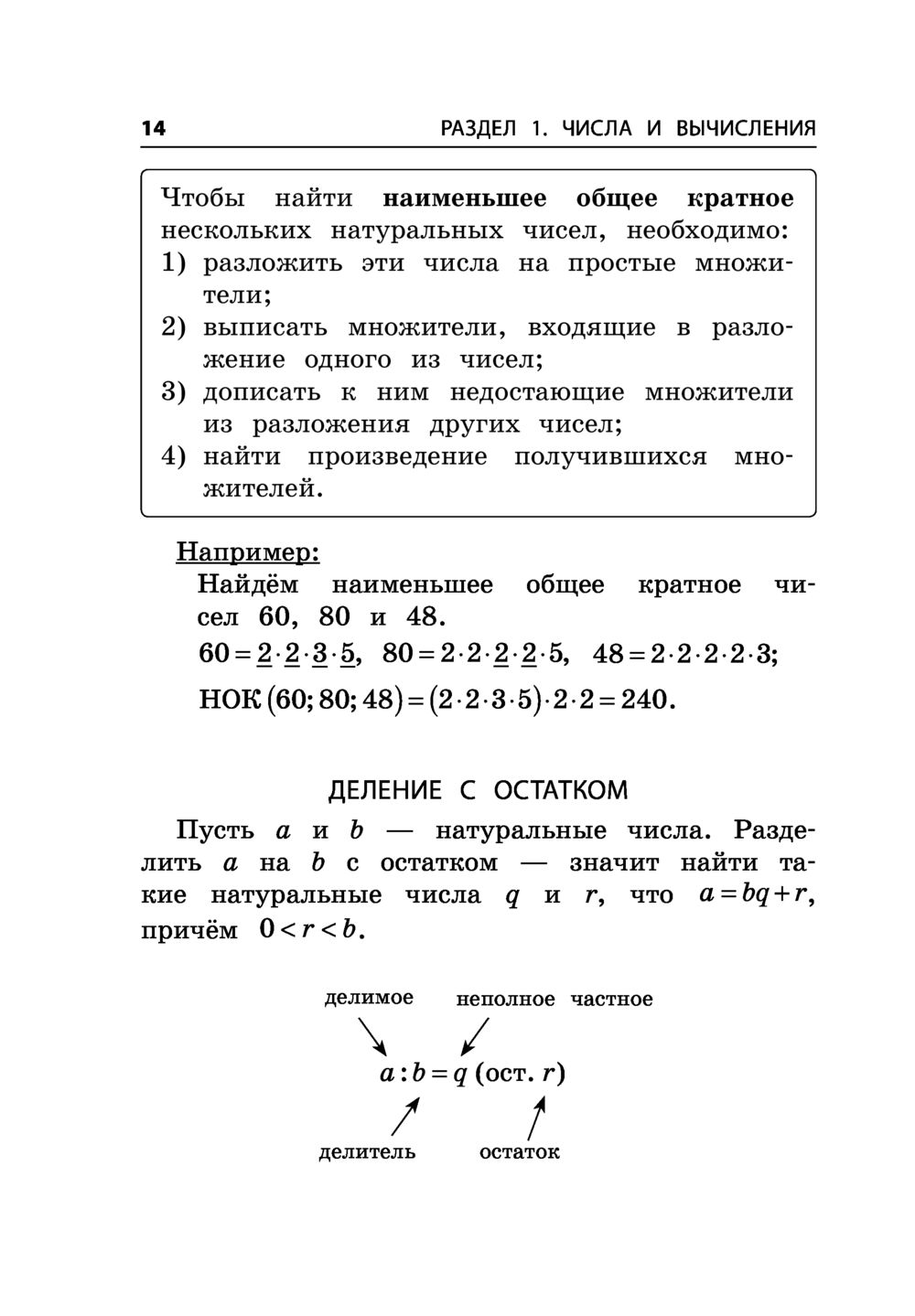 В книгу включены необходимые справочные материалы по основным разделам школьного курса, представленные в наглядных и удобных для запоминания таблицах. Приводятся определения математических понятий, формулировки правил и пояснения к ним, необходимые формулы и обучающие рисунки, а также примеры задач с решениями.