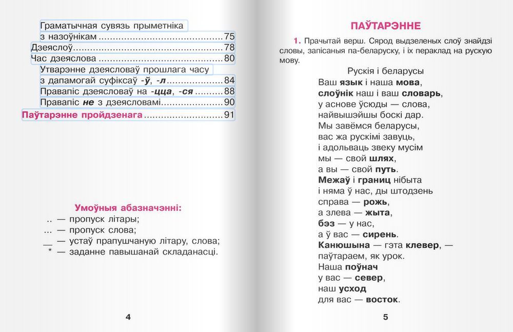 Дапаможнік можна выкарыстоўваць як для адпрацоўкі арфаграфічных i моўных уменняў і навыкаў вучняў, так і для ажыццяўлення кантролю па засваенні вучэбнага матэрыялу па правапісе і граматыцы па-за адукацыйнага працэсу ва ўстановах адукацыі і дома.