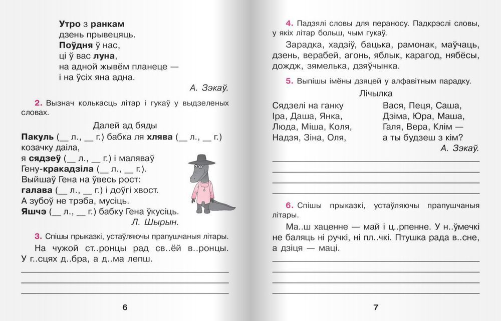 У дапаможніку шмат займальнага матэрыялу: загадак, скорагаворак, вершаў і апавяданняў беларускіх пісьменнікаў.