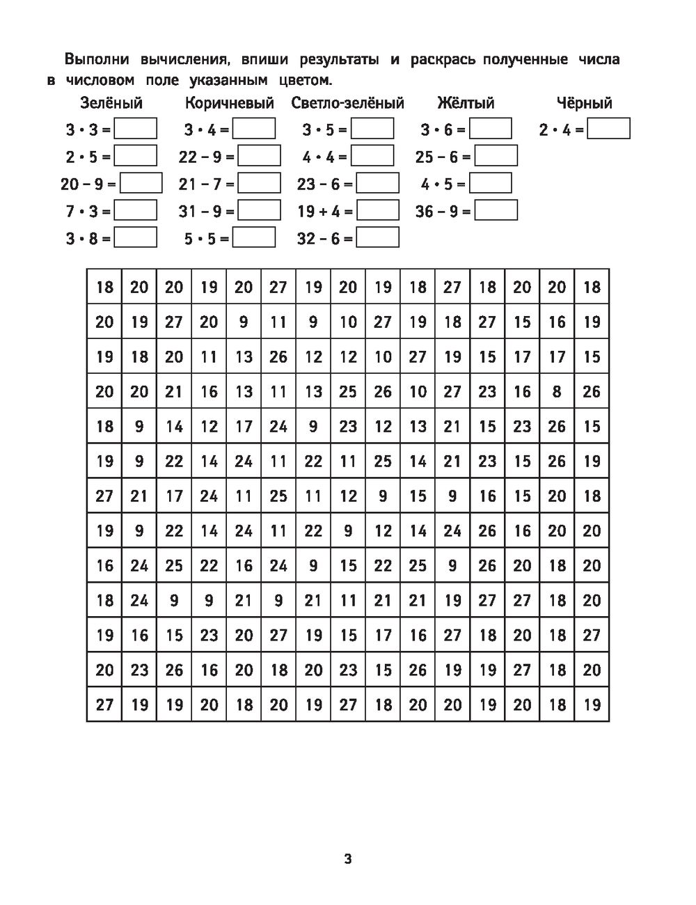 На страницах этой книги собраны задания на закрепление случаев сложения и вычитания в пределах 100, на закрепление таблицы умножения и деления, внетабличных случаев умножения и деления. Дети решают примеры, записывают ответы. Затем находят на числовом поле полученные результаты и закрашивают клетки с числами в указанные цвета. Выполнение таких заданий развивает память, внимание, мелкую моторику рук. Книга предназначена для детей, родителей и учителей начальной школы.