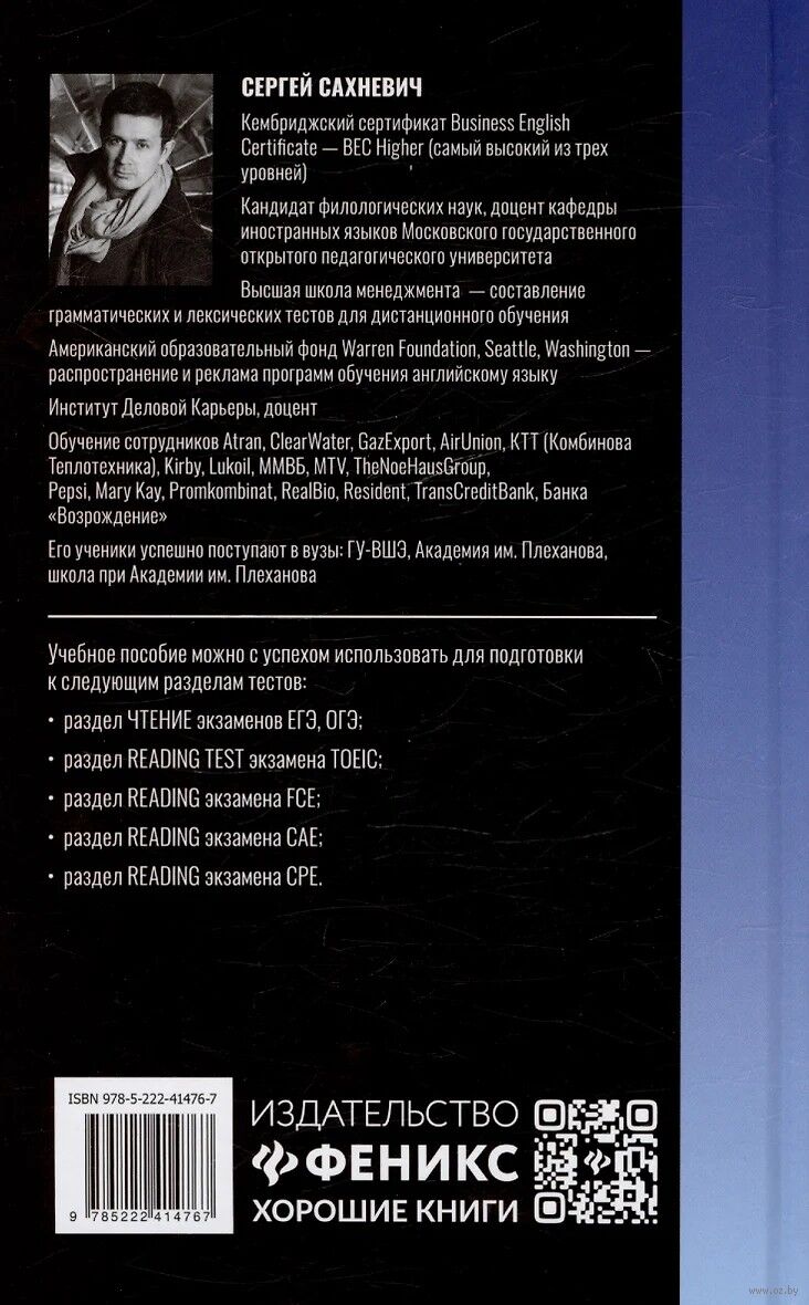Данное пособие составлено на основе стандарта среднего (полного) общего образования по английскому языку, в то же время материал ориентирован на решение конкретной задачи – успешное выполнение заданий раздела "Reading" экзаменов ОГЭ, ЕГЭ, IELTS, TOEIC, FCE, САЕ, СРЕ.